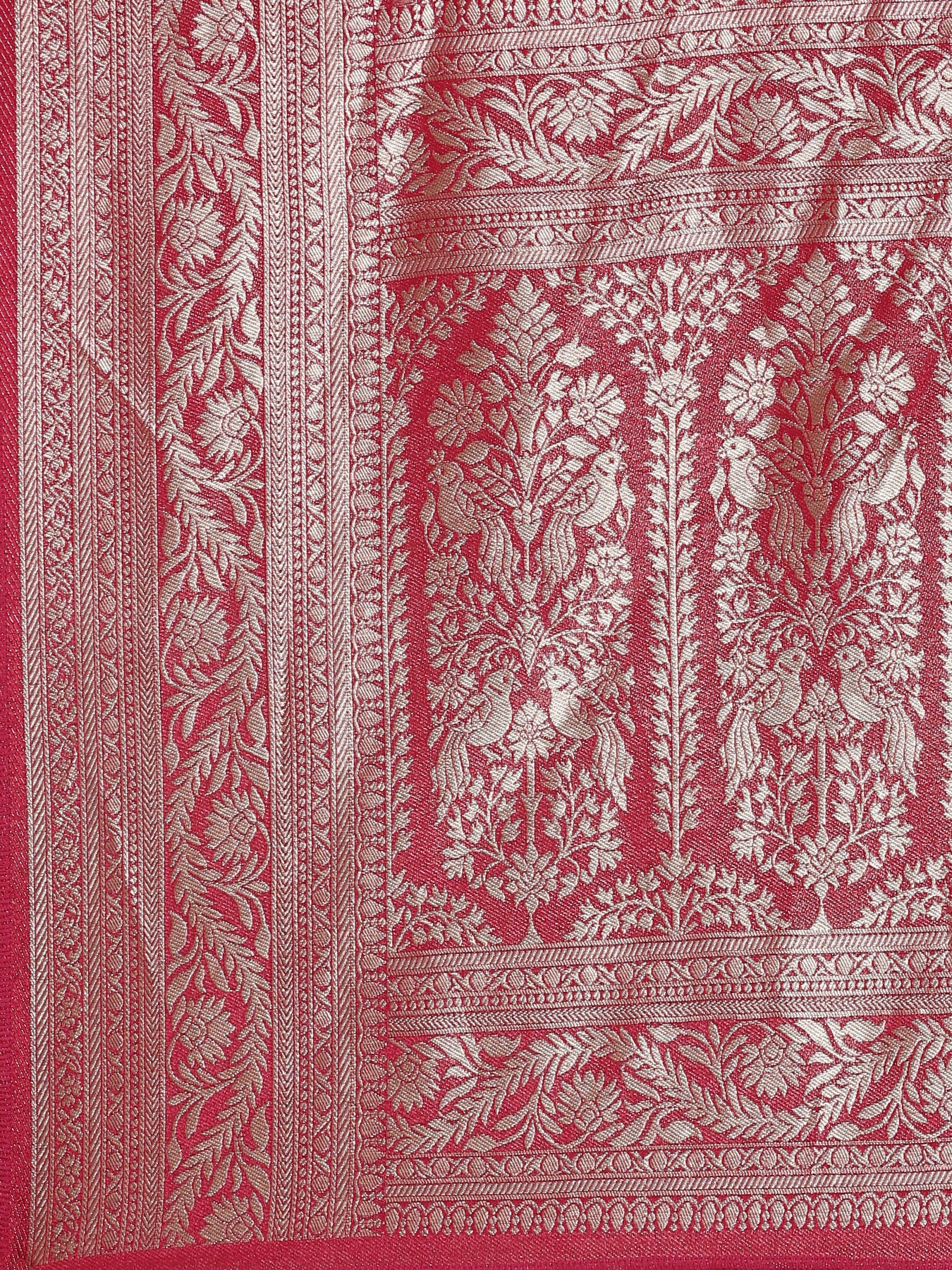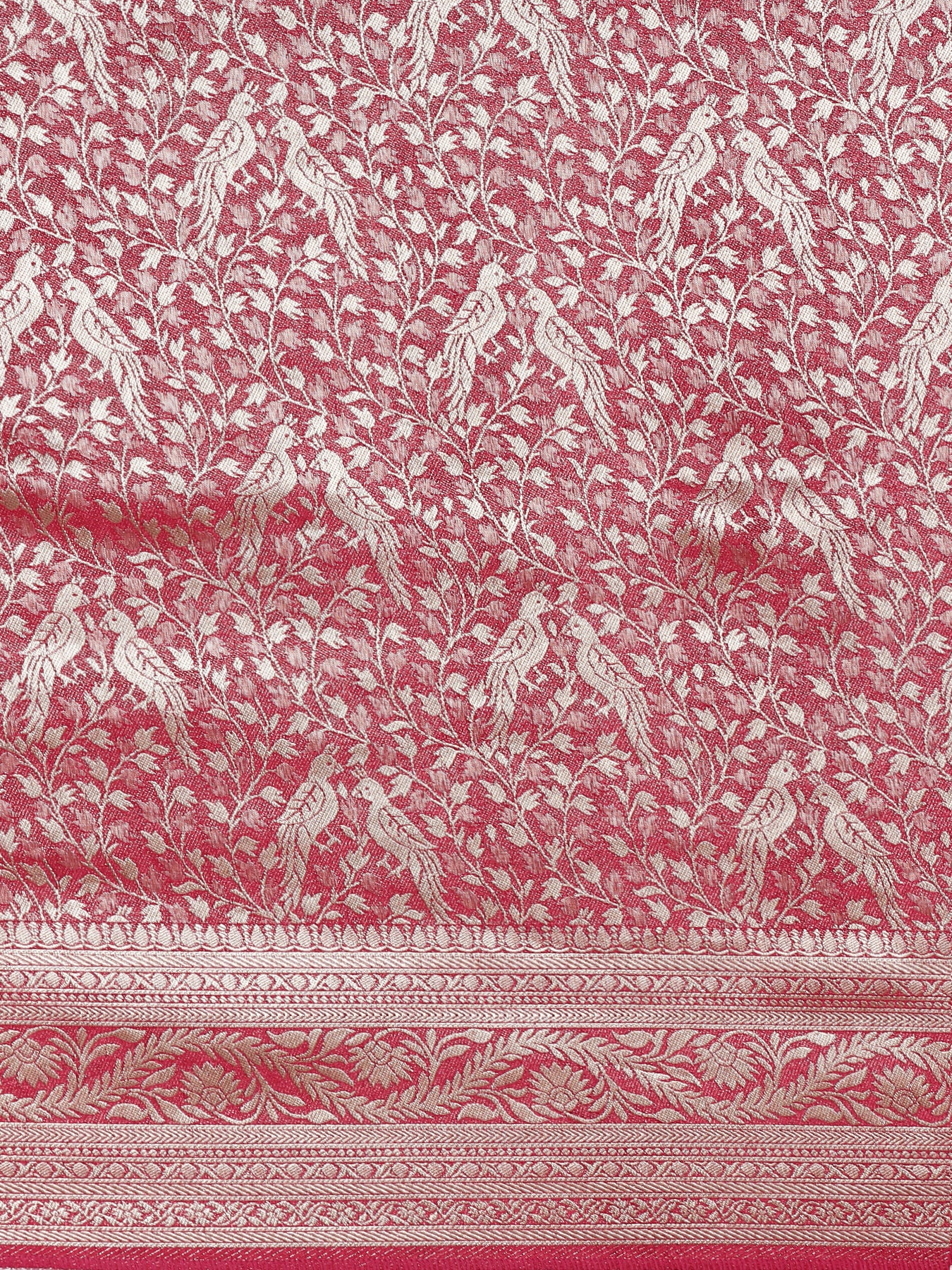 Elevate your elegance with this Rani Pink Banaras Weaved Saree, showcasing intricate craftsmanship and timeless design. The rich, vibrant pink hue complements the exquisite Banarasi weaving, creating a perfect blend of tradition and sophistication. Ideal for special occasions, this saree offers graceful draping and a luxurious feel that enhances your presence effortlessly.