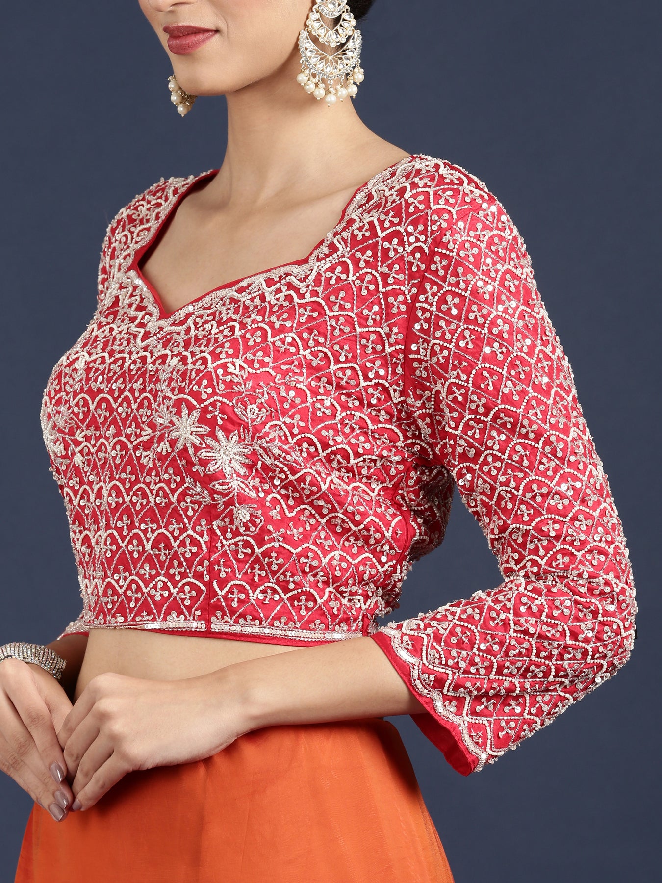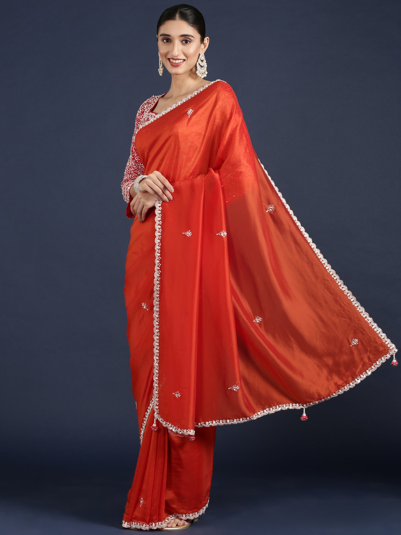 Rust Crepe Sequins Saree With Heavy Work Readymade Blouse