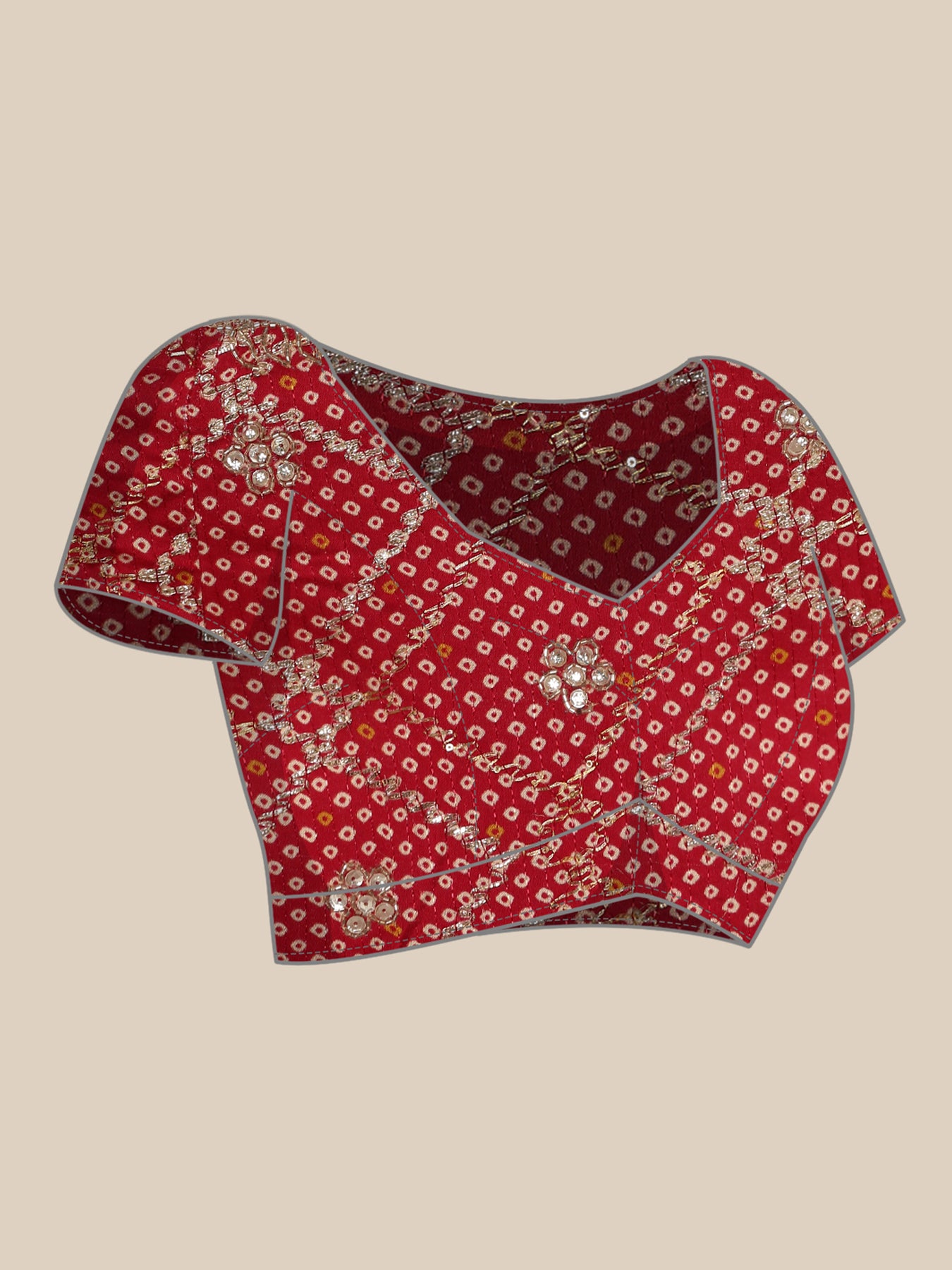The saree is accompanied by a stylish, ready-made blouse designed to complete your look.
