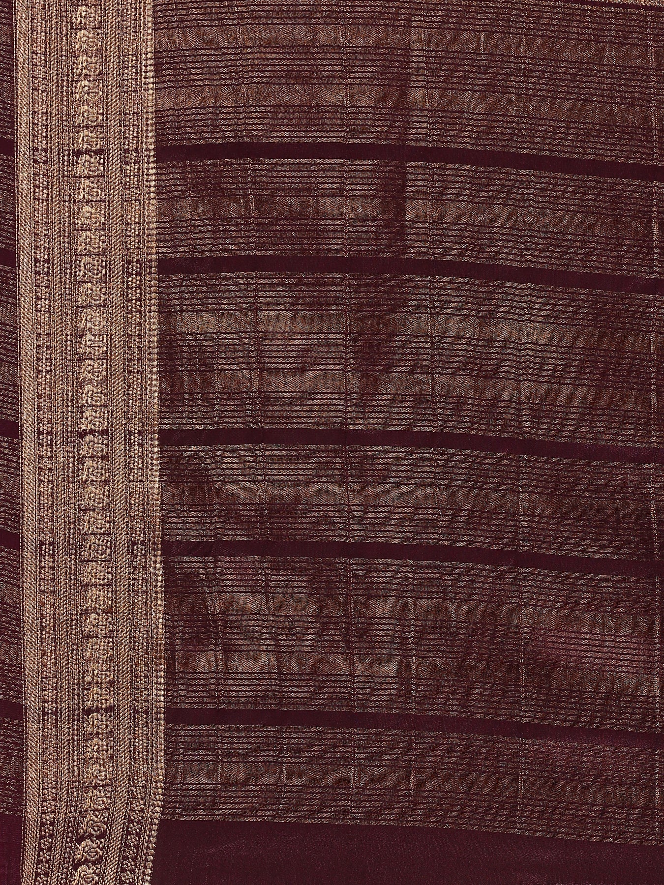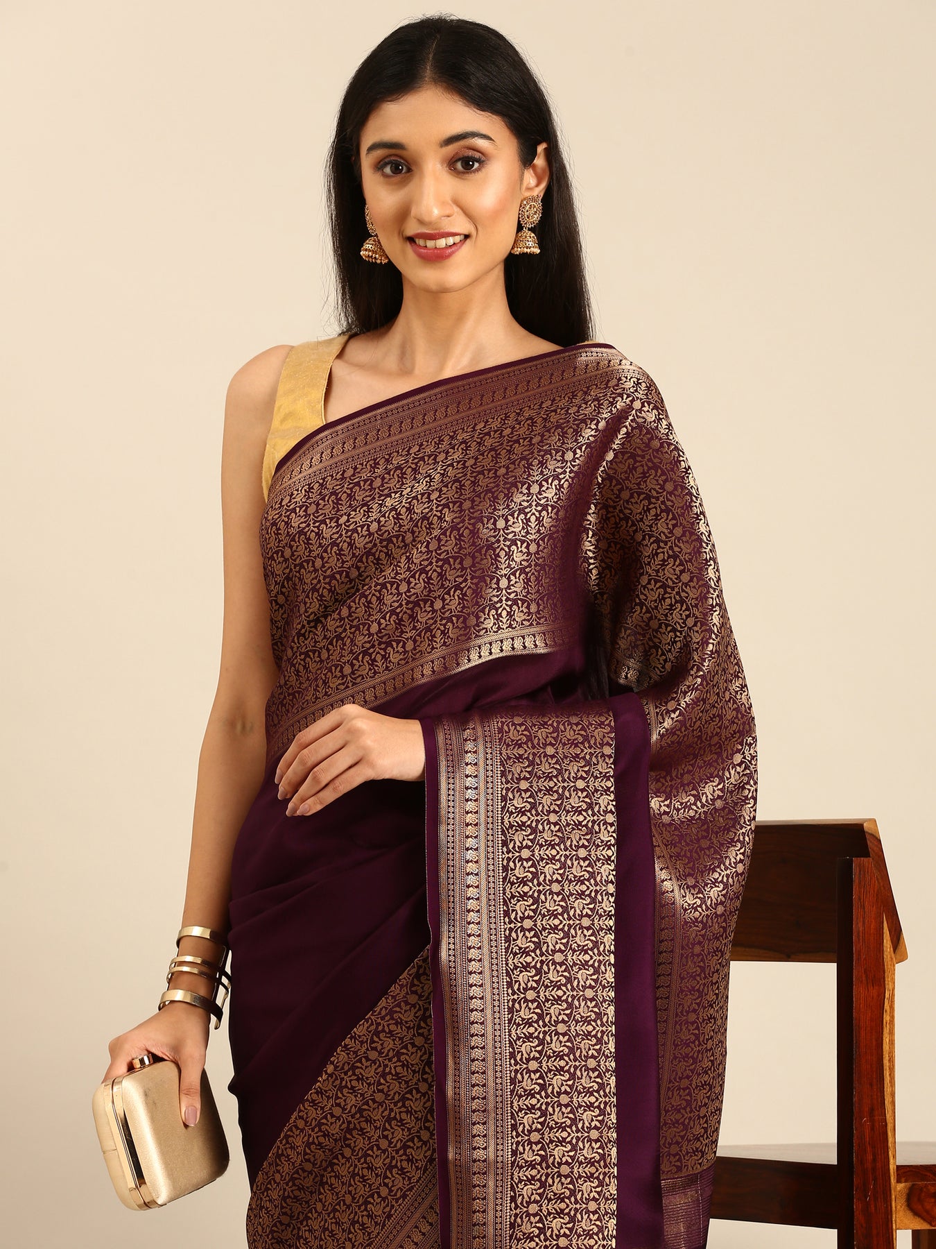 Wine Mysore Crepe Saree With Zari Jaal Border