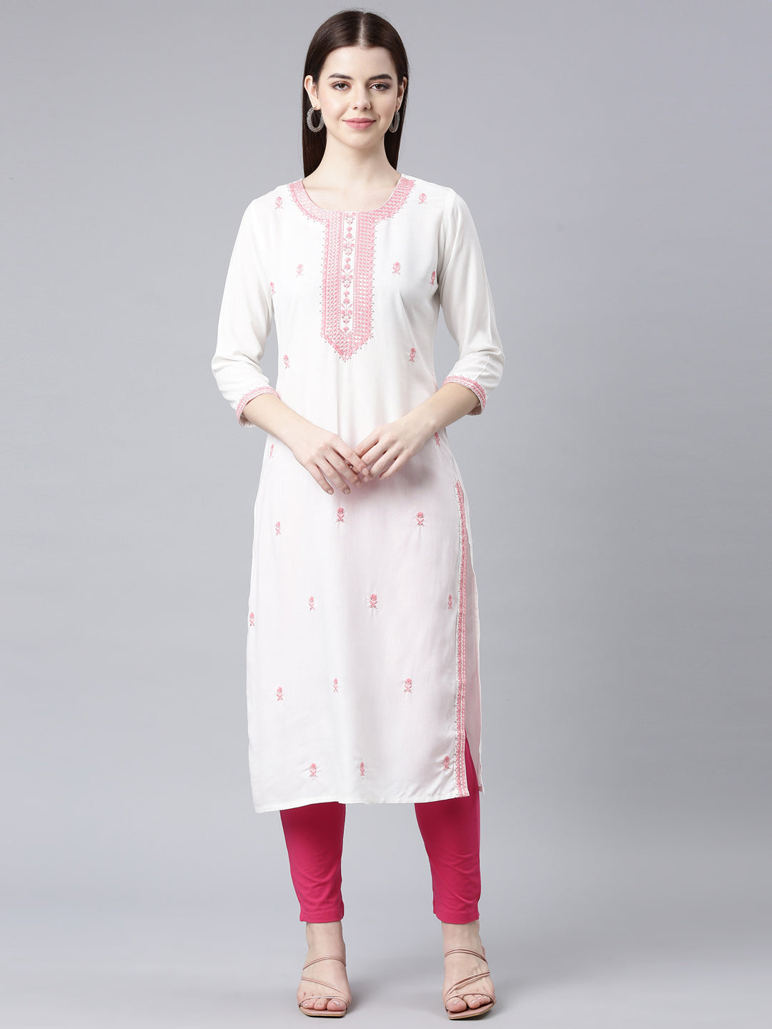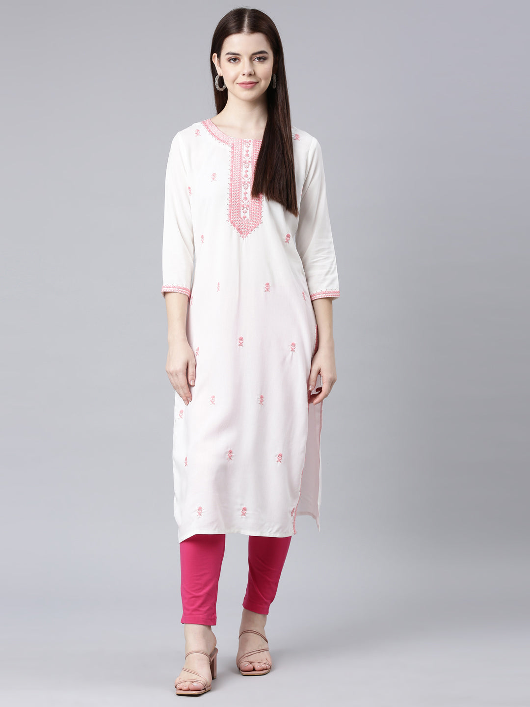 Neerus Coral Straight Casual Floral Straight Kurtas Simple and stylish, these kurtas are perfect for any casual occasion. Available in beautiful coral color with intricate floral design, they offer comfortable and effortless fashion for any day.