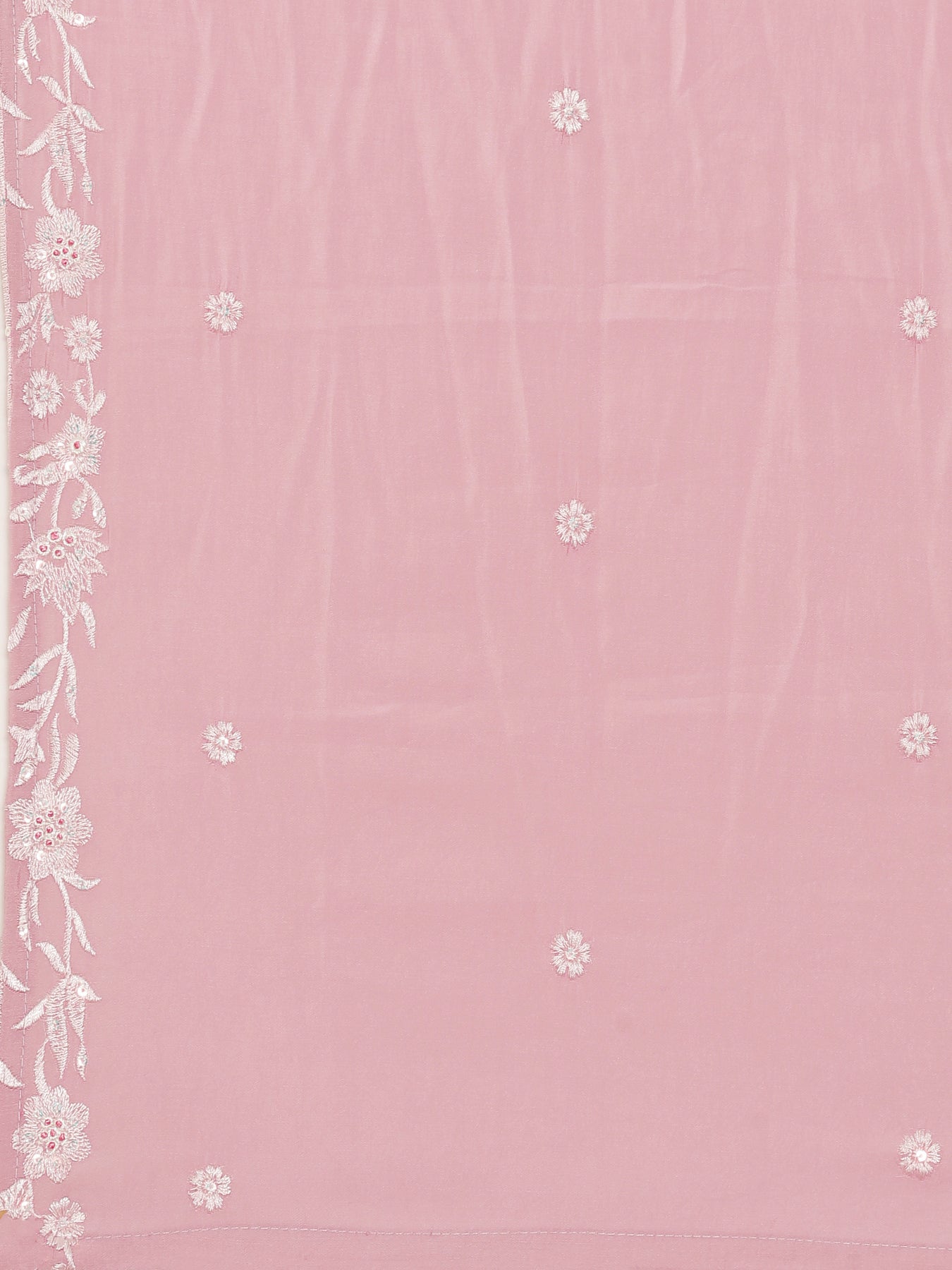 Elevate your ethnic wardrobe with this Baby Pink Modal Silk Embroidery Three Piece Suit Set. Crafted from soft, breathable modal silk, it offers luxurious comfort and a refined drape. Intricate embroidery adds delicate elegance to the ensemble, making it ideal for festive occasions or formal gatherings. The coordinated three-piece design ensures a polished, cohesive look that speaks of understated sophistication. Perfect for those who appreciate timeless style infused with gentle, feminine charm.