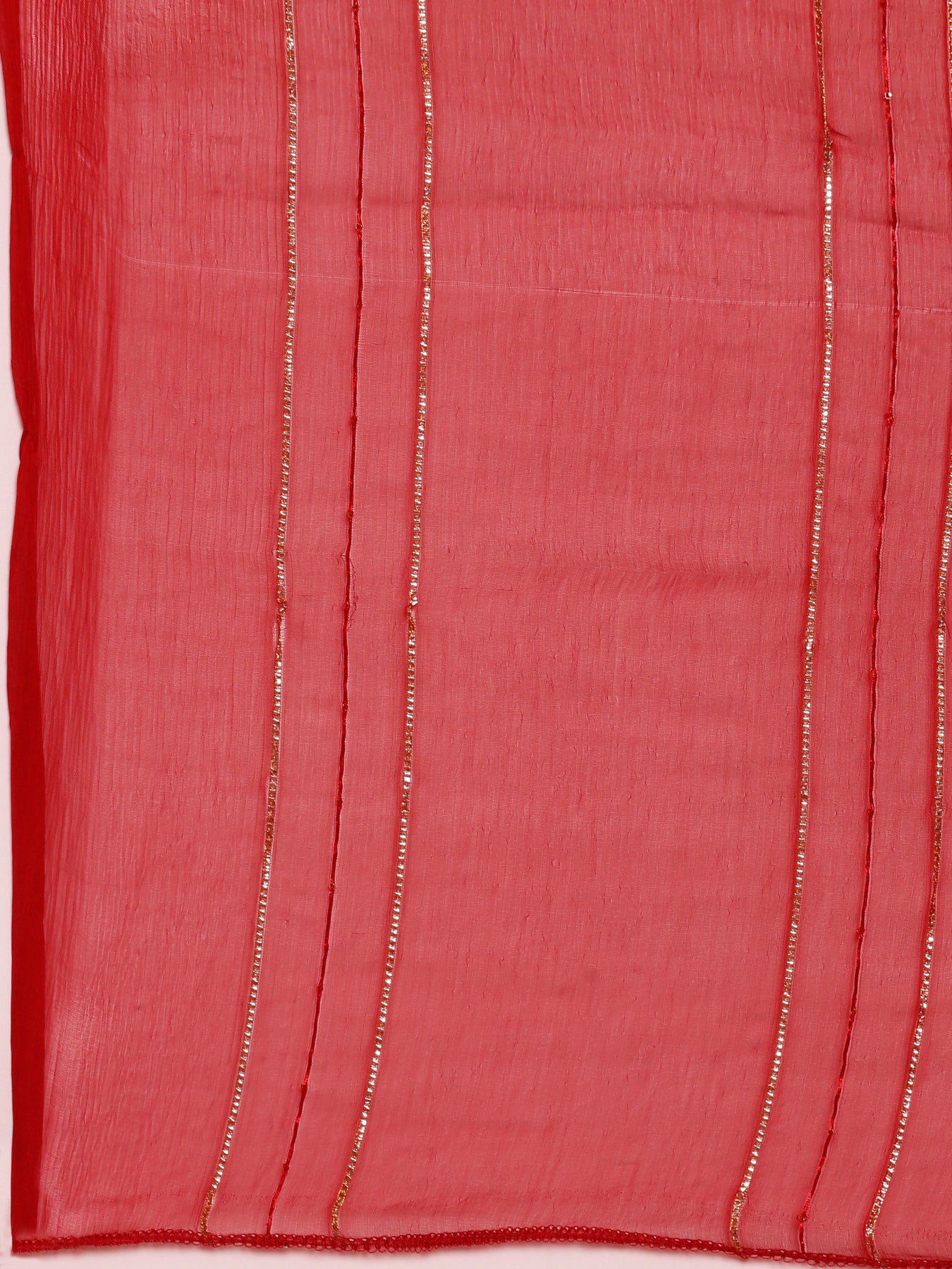 This Dark Rust Chinnon Printed Three Piece Set combines elegance and comfort in one refined ensemble. Crafted from lightweight Chinnon fabric, it features a delicate printed design that enhances its sophisticated appeal. Ideal for both casual gatherings and formal occasions, this set offers a graceful silhouette while ensuring breathability and ease of movement. Elevate your wardrobe with this timeless, versatile outfit designed to complement your polished style.
