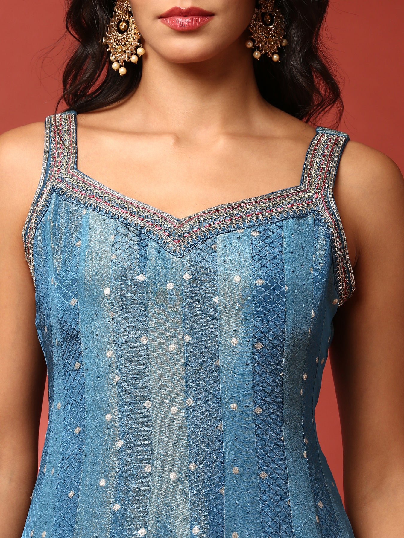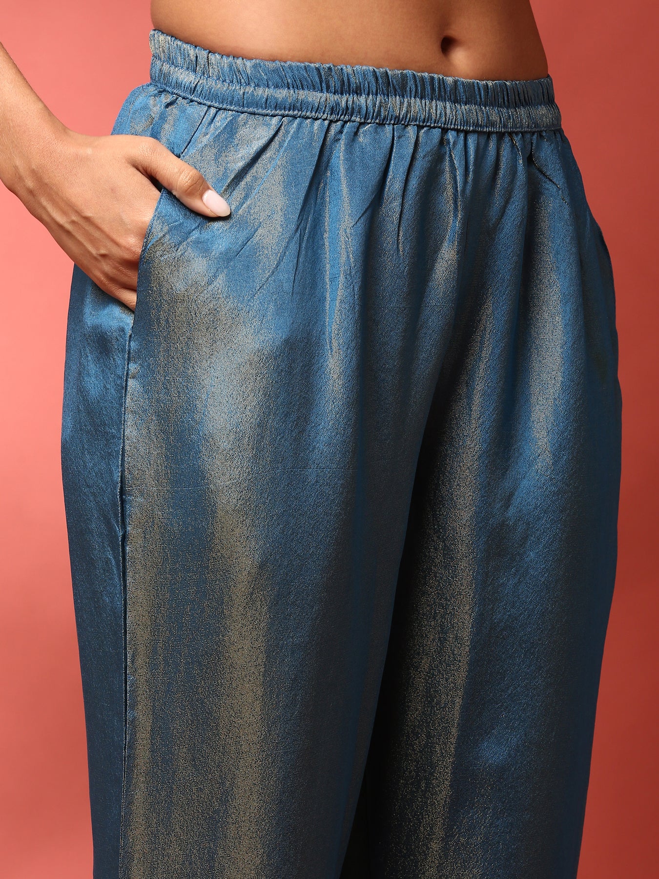 Crafted from luxurious ferozi tissue fabric, this three-piece Anarkali suit set offers a refined blend of comfort and elegance. The rich texture of the tissue fabric enhances the flow and drape, creating a graceful silhouette. Designed for versatility, the set typically includes a beautifully embroidered Anarkali kurta, matching bottoms, and a complementary dupatta. Ideal for formal occasions, it provides both style and ease, making it a sophisticated choice for those seeking traditional attire with a contemporary touch.