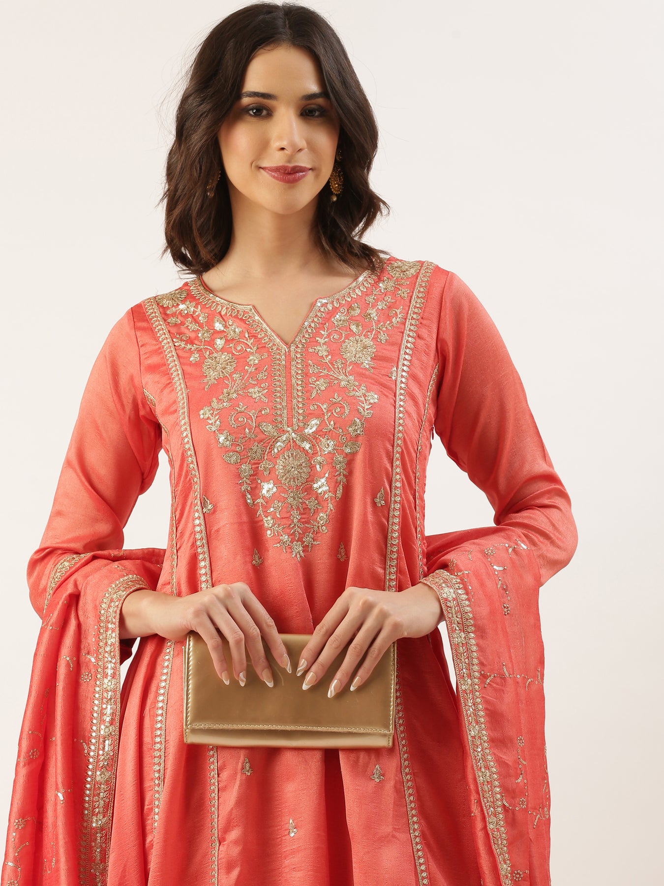 Experience elegance with the Gajari Embroidered Vichitra Silk Short Kali. Crafted from soft Vichitra silk, this vibrant gajari-colored garment features delicate embroidery that adds a refined touch. Its short kali design offers a comfortable fit while maintaining a stylish silhouette, perfect for festive occasions or casual gatherings. Embrace the blend of tradition and contemporary style with this beautifully crafted piece.