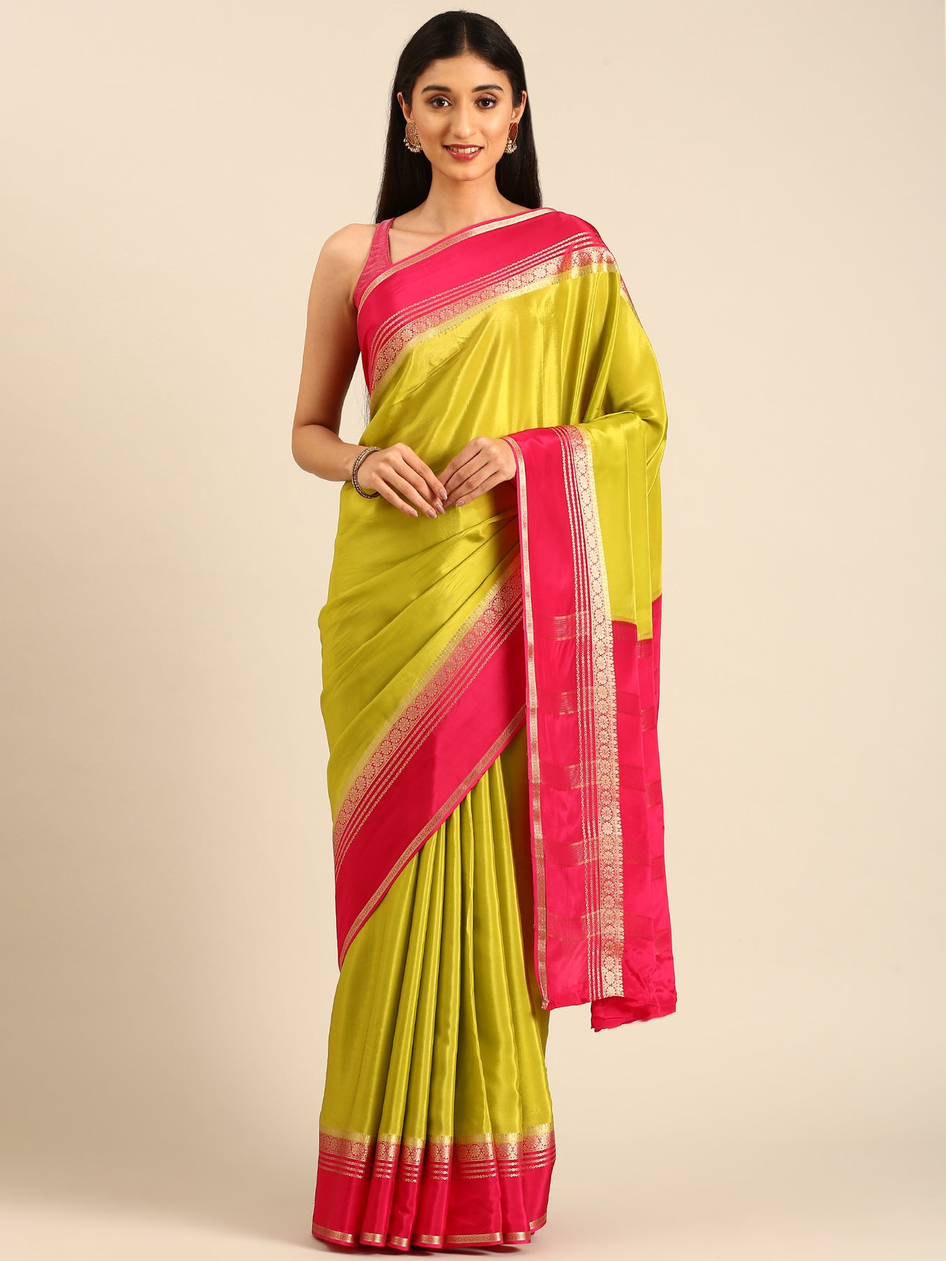 Green Mysore Crepe Silk Saree Plain Contrast Border And Pallu