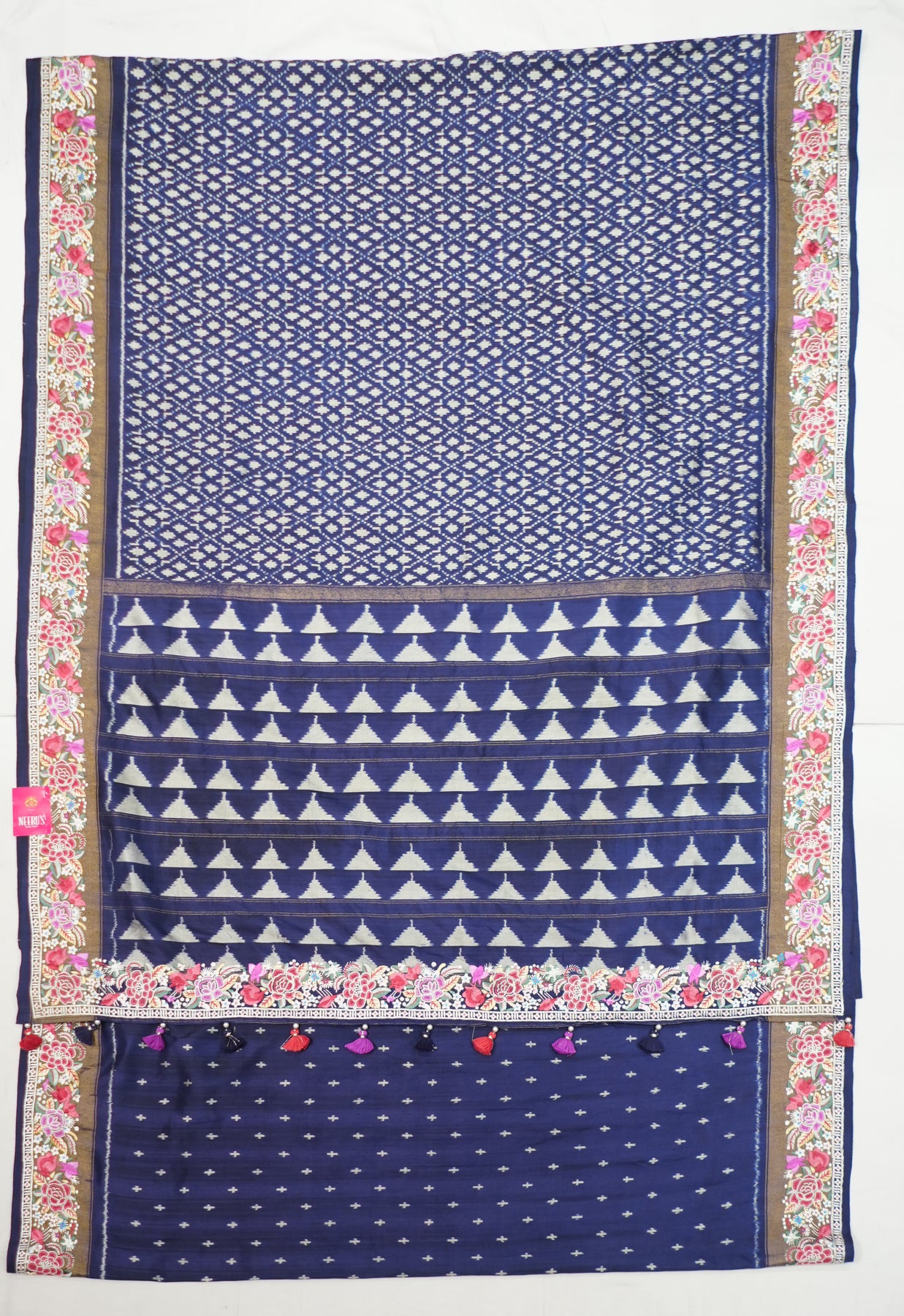 Embrace the artistry of this Navy Blue Handloom Patola Saree, where traditional weaving meets intricate embellishment. Each piece showcases authentic Patola patterns created through time-honored handloom techniques, complemented by delicate petite point embroidery adorning the border. The deep navy shade provides an elegant canvas that works beautifully for weddings, festivals, and special occasions. This saree celebrates the skill of master craftspeople, offering you a garment that honors heritage while making a sophisticated statement. Drape yourself in quality craftsmanship and timeless beauty.