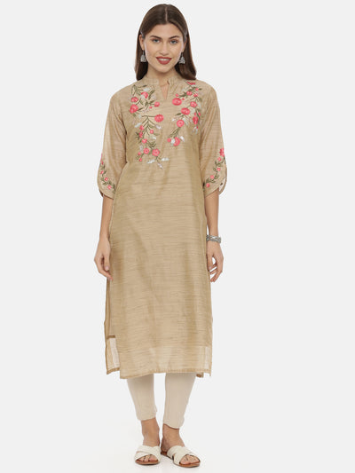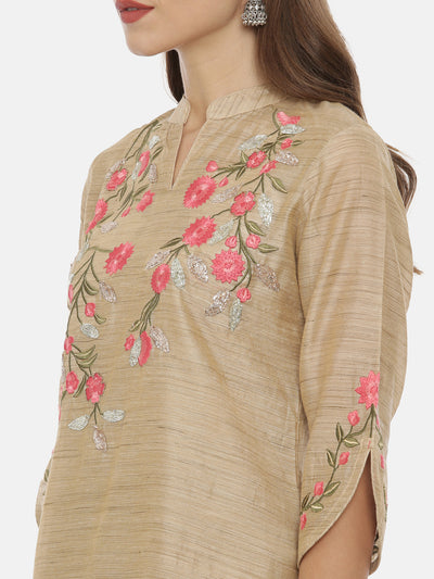 Neeru's Beige Color, Chanderi Fabric Tunic .