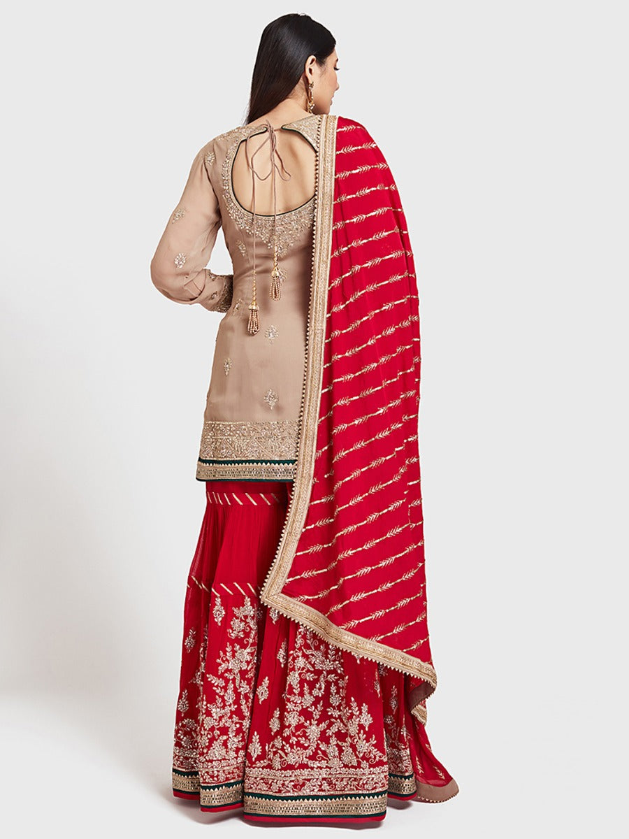 Neeru's Beige Color Georgette Fabric Ghagra Set. All Ready-To-Wear Styles Consist Of 2 Inches Margin For Alterations.