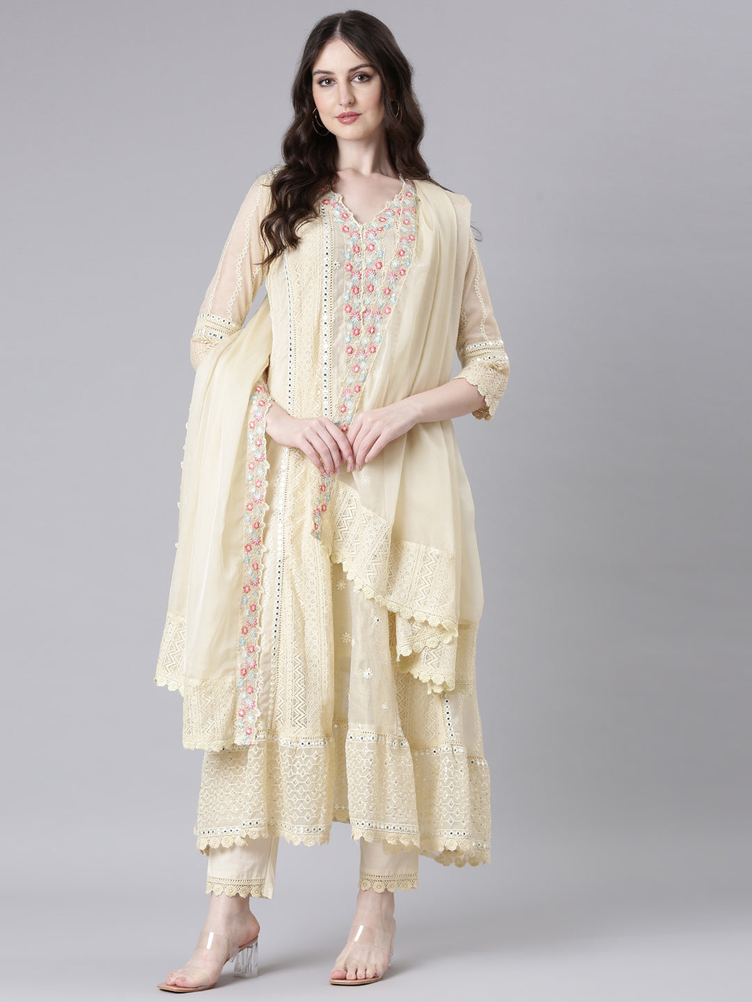 This classic outfit is made from high-quality materials that will last you for years to come. Perfect for a special occasion, this elegant Anarkali Kurta and Trousers combo with matching Dupatta is sure to turn heads.