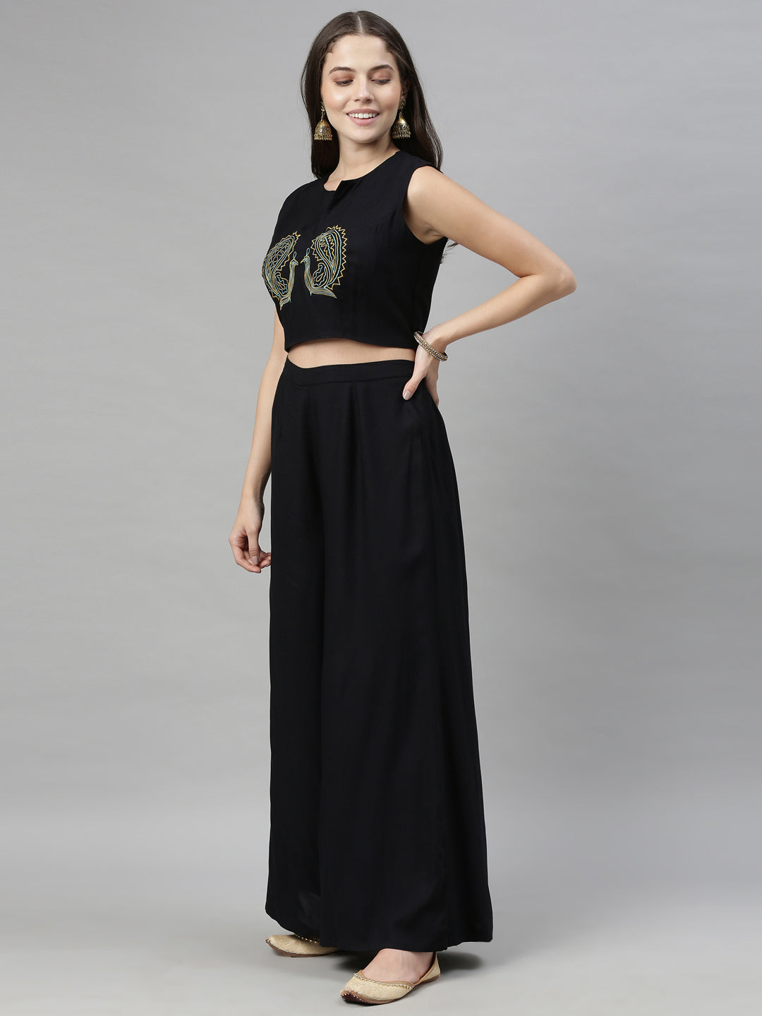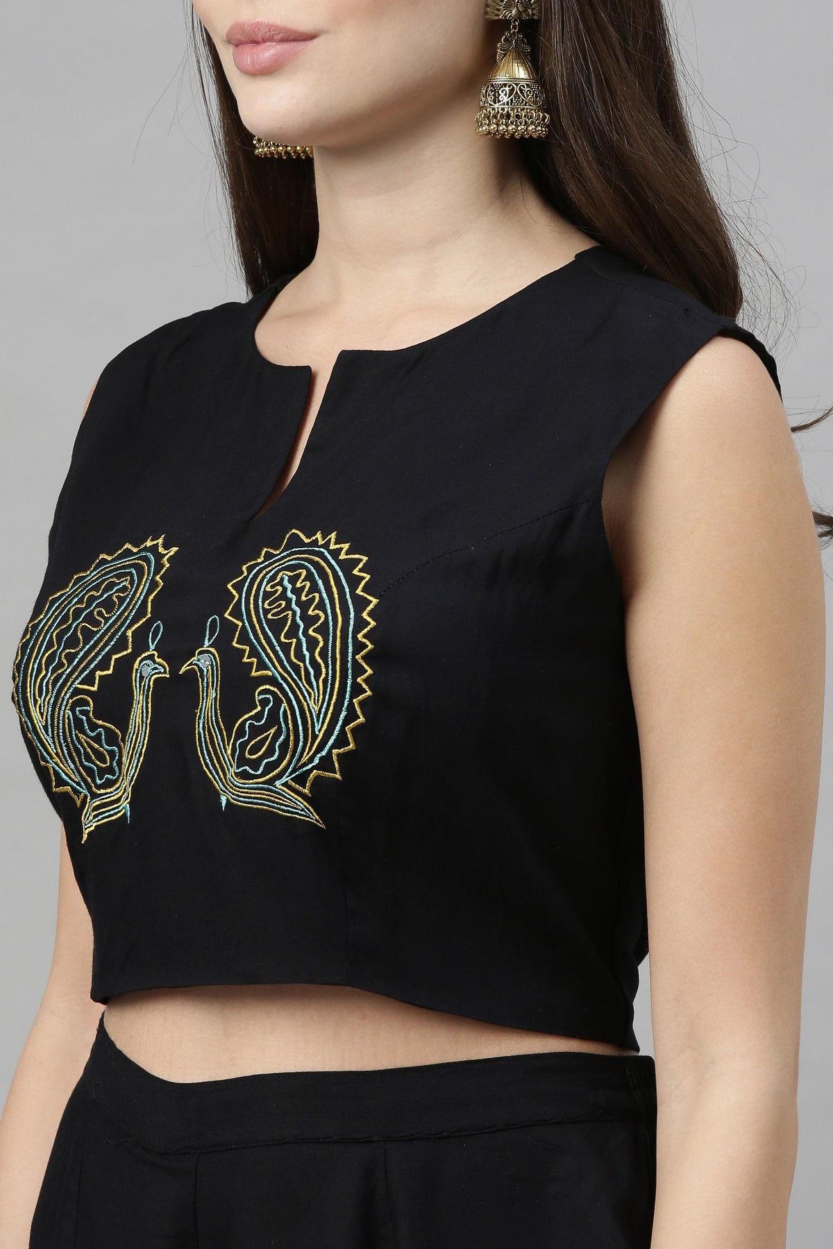 Neeru's Black Color, Rayon Fabric Crop-Top.