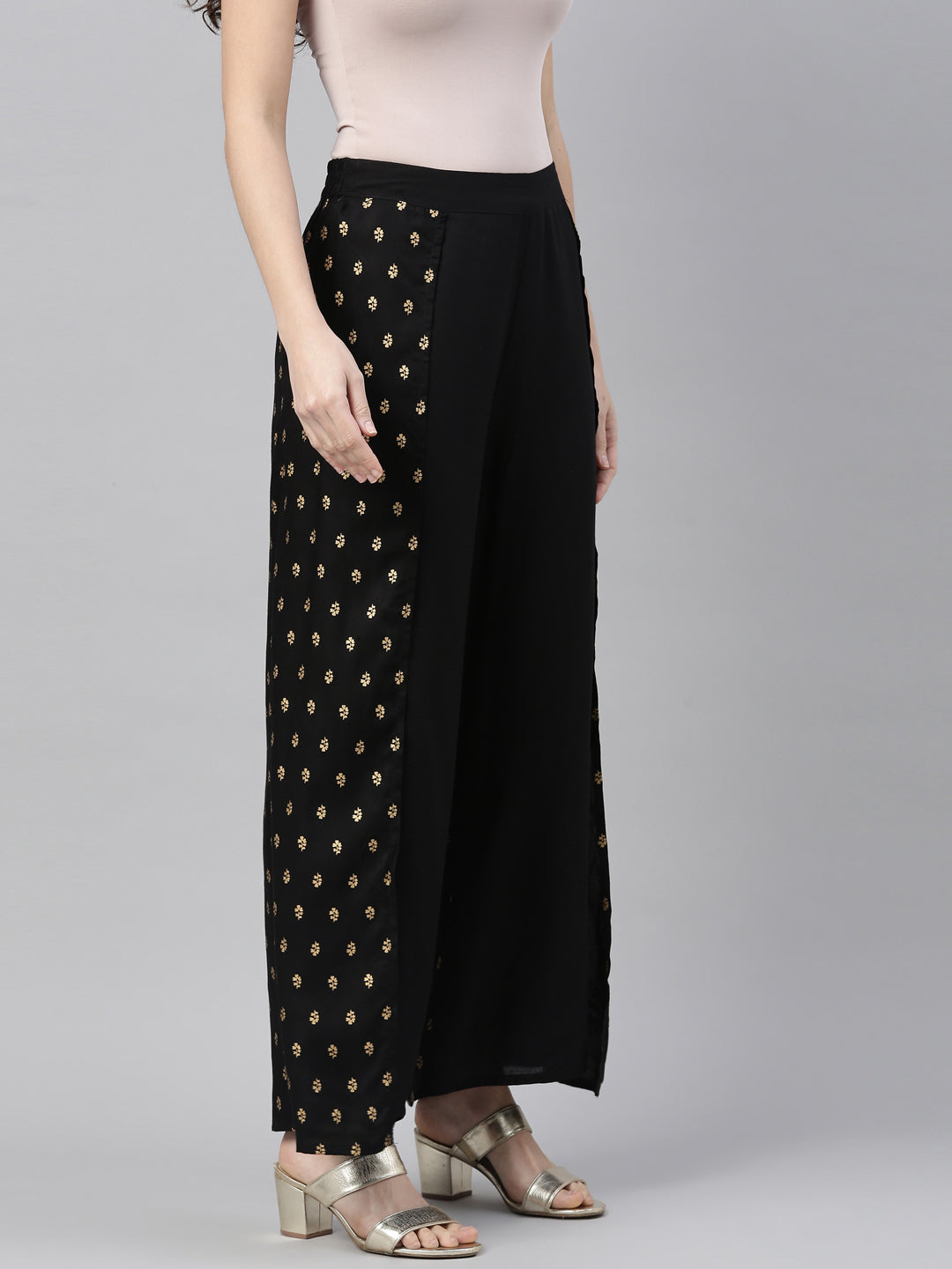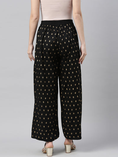 Neerus Black Color Rayon Fabric Plazzo