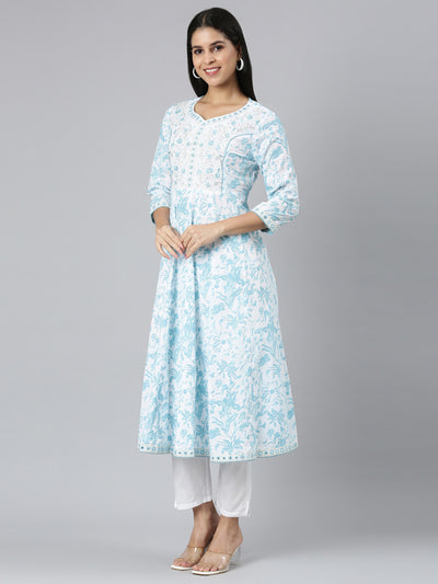 Neerus Blue Panelled Straight Printed Kurta and Trousers With Dupatta This matching outfit lets you find your perfect combination of traditional and modern fashion.