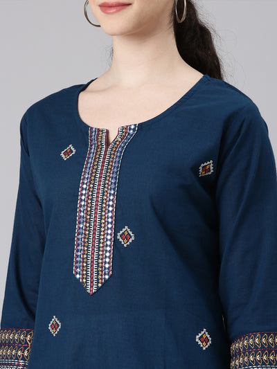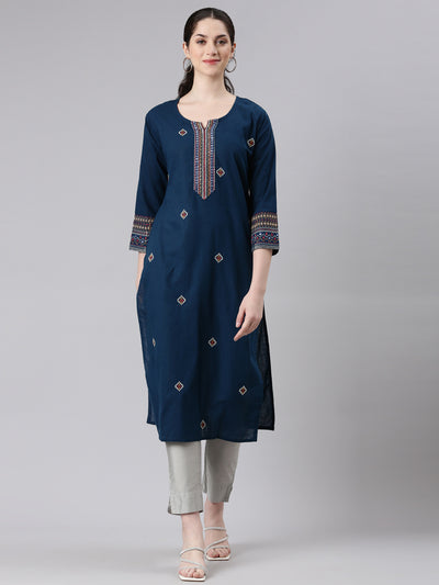 Neerus Blue Straight Casual Panelled Kurtas Comfortable and stylish, these kurtas are perfect for everyday wear.