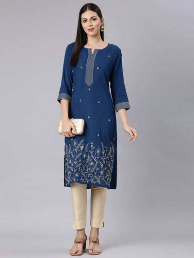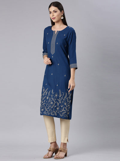 Neerus Blue Straight Casual Solid Straight Kurtas