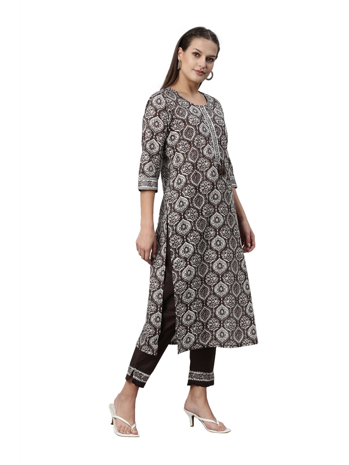 Neerus Brown Color Santoon Fabric Kurta