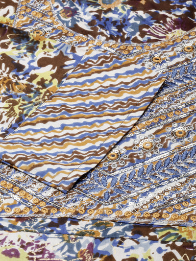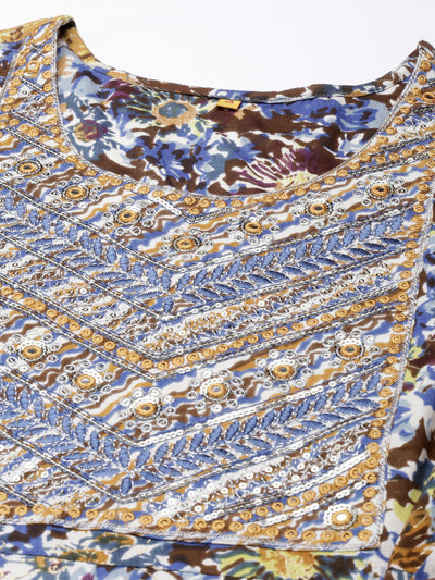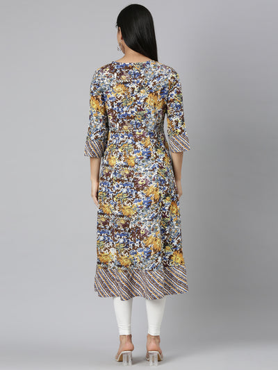 Neerus Brown Straight Casual Floral Anarkali Kurtas