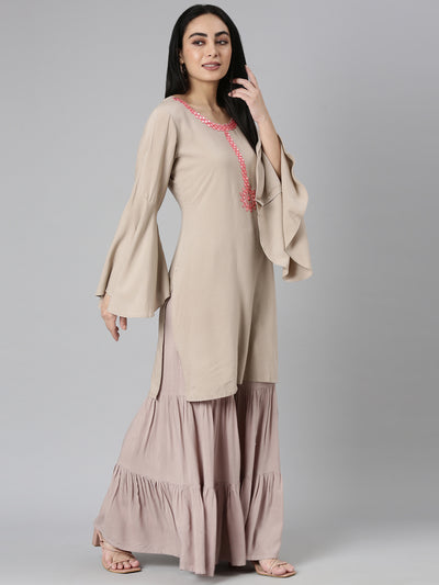 Neerus Gold Regular Straight Solid Kurta and Sharara