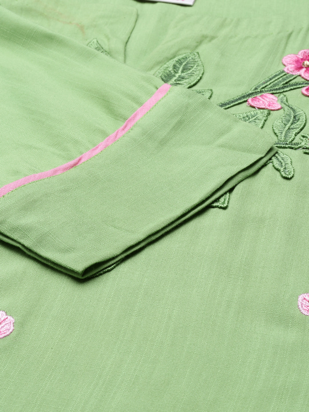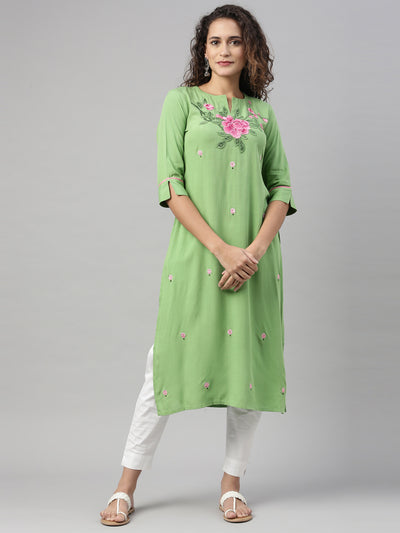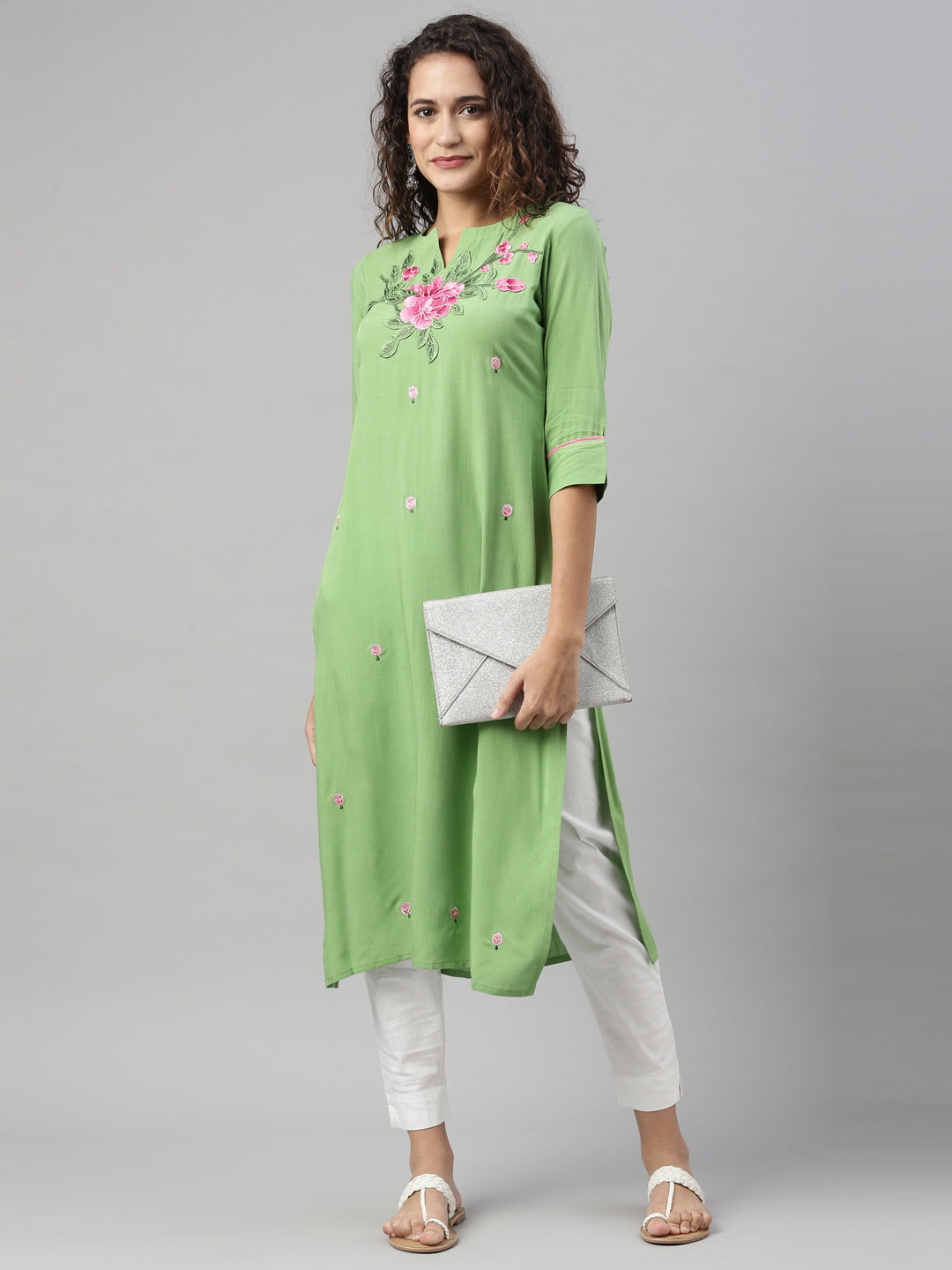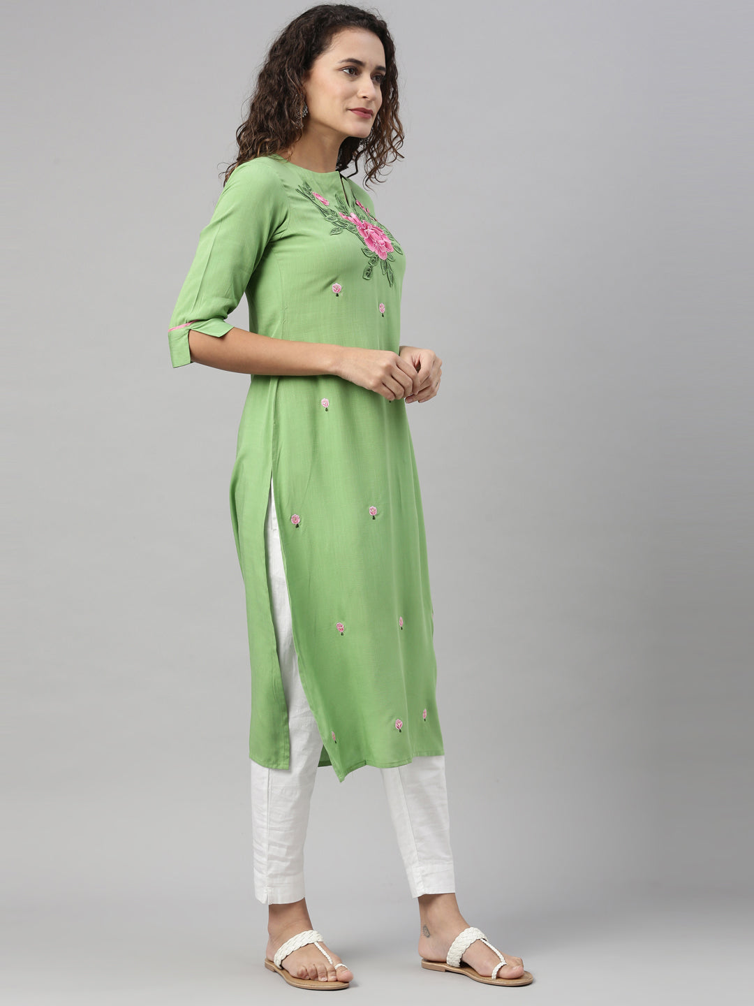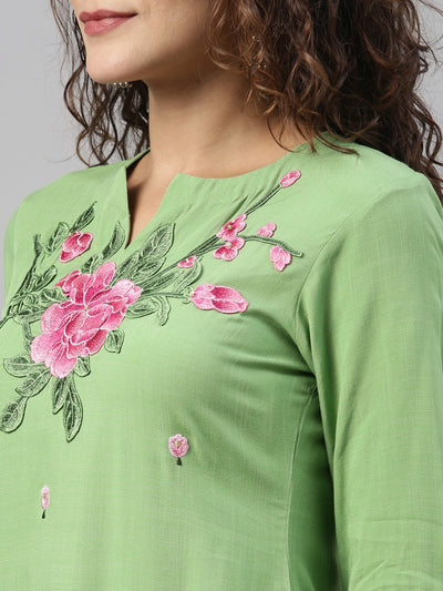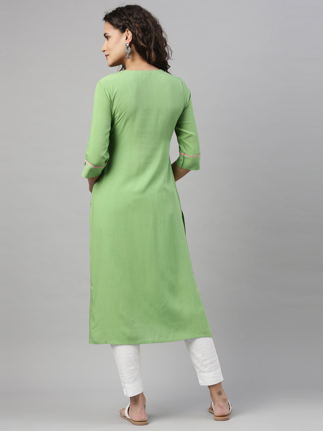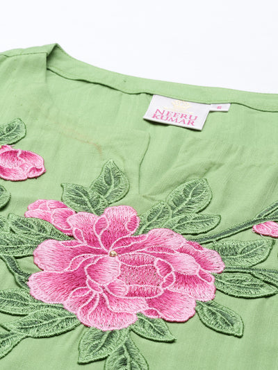 Neeru's Green Solid And Yoke Design With Patchwork Straight Kurtas.