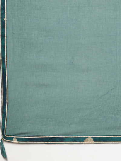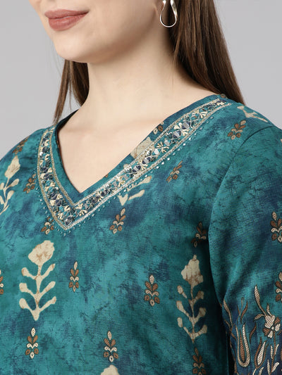 Neerus Green Regular Straight Floral Kurta And  Trousers With Dupatta
