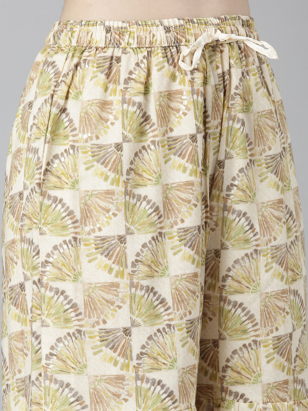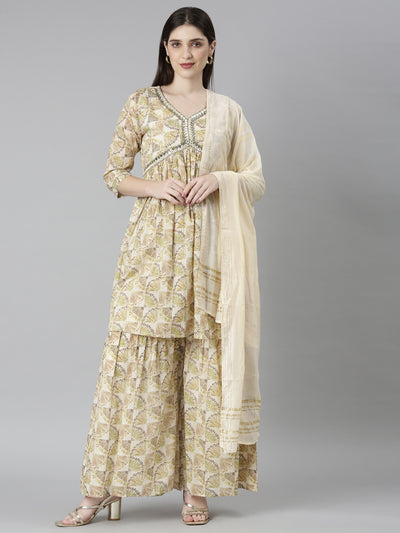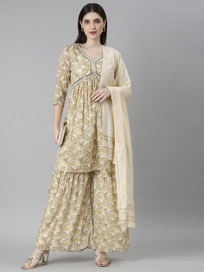Neerus Green Regular Straight Tribal Kurta And Palazzos With Dupatta