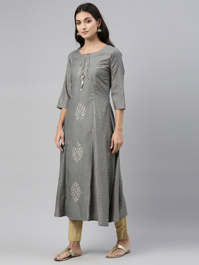 Neeru's Grey Color, Muslin Fabric Tunic .