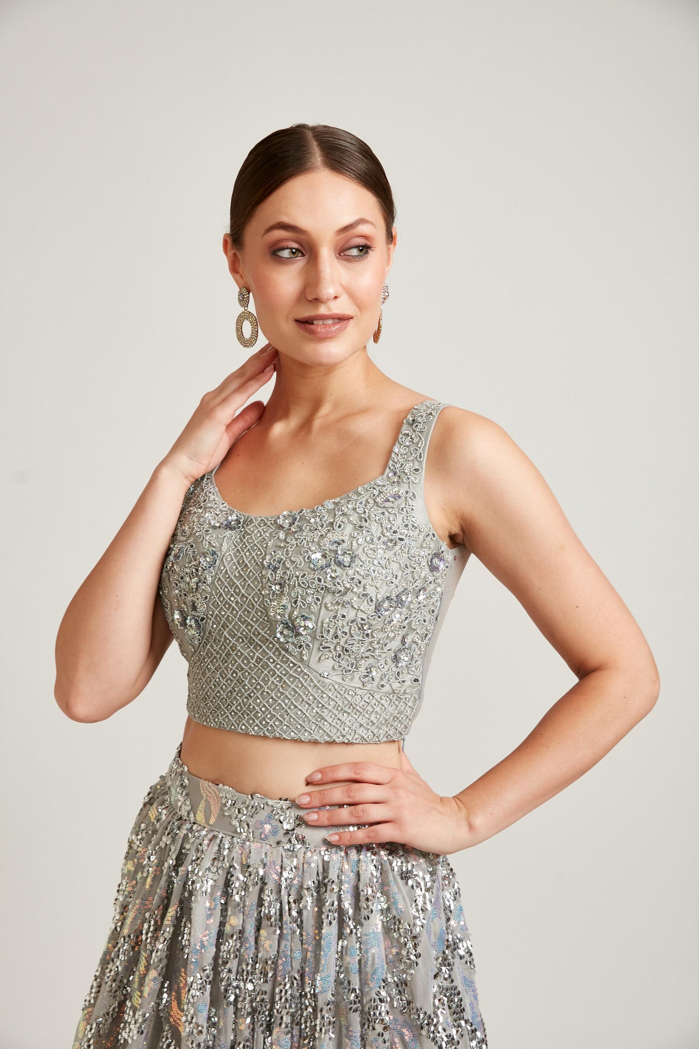 Neeru's Grey Color Nett Fabric Lehenga Choli