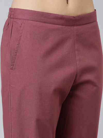 Neeru's Grey Regular Calf Length Printed Kurta Solid Trousers
