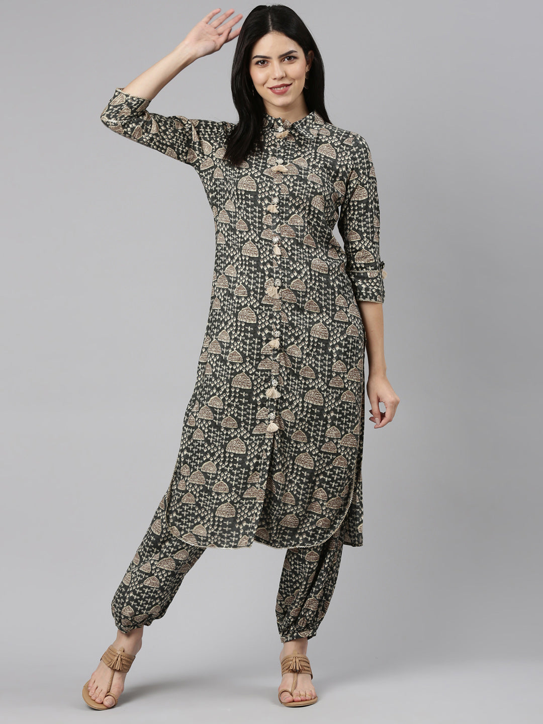 Neerus Grey Regular Straight Printed Kurta And Salwar