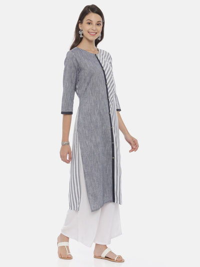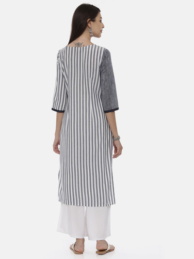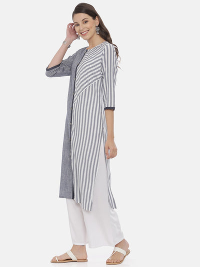 Neeru's Grey Striped Straight Kurta.