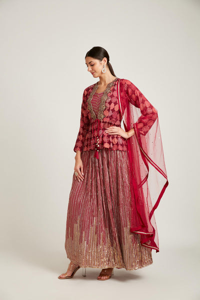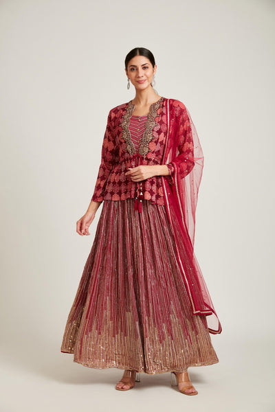 Neeru's Magenta Color Georgette Fabric Kurta Set