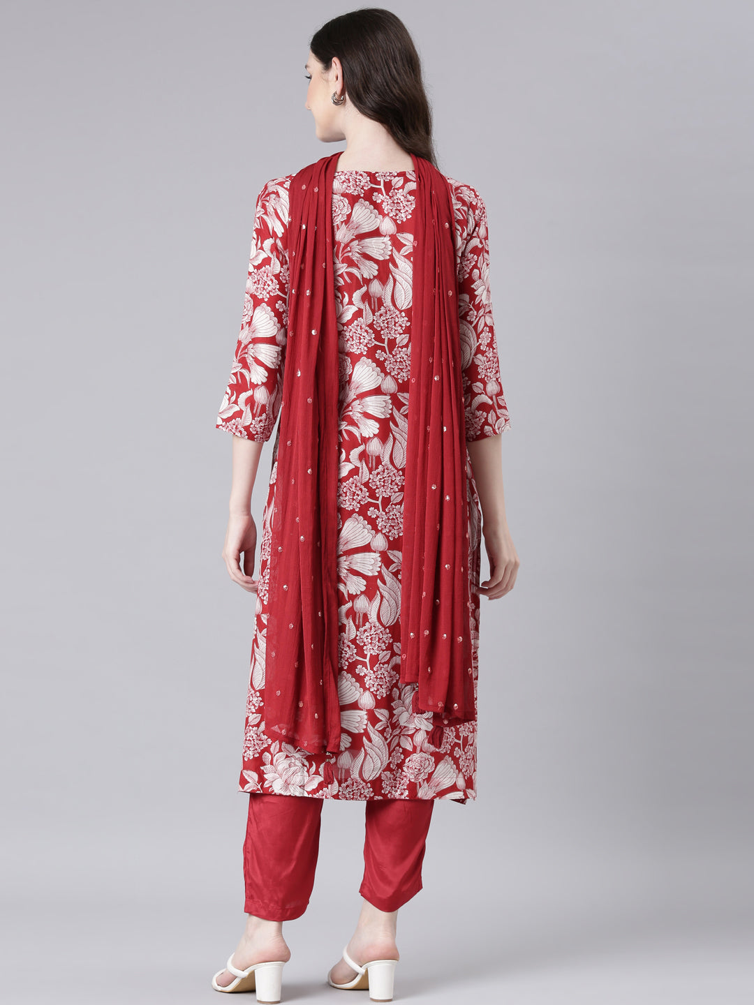 Whether you're headed to a wedding, party, or casual day out with friends, this maroon printed straight kurta brings together style and comfort in one elegant look.