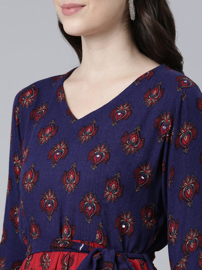 Neerus Maroon Straight Casual Printed Dress