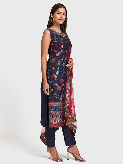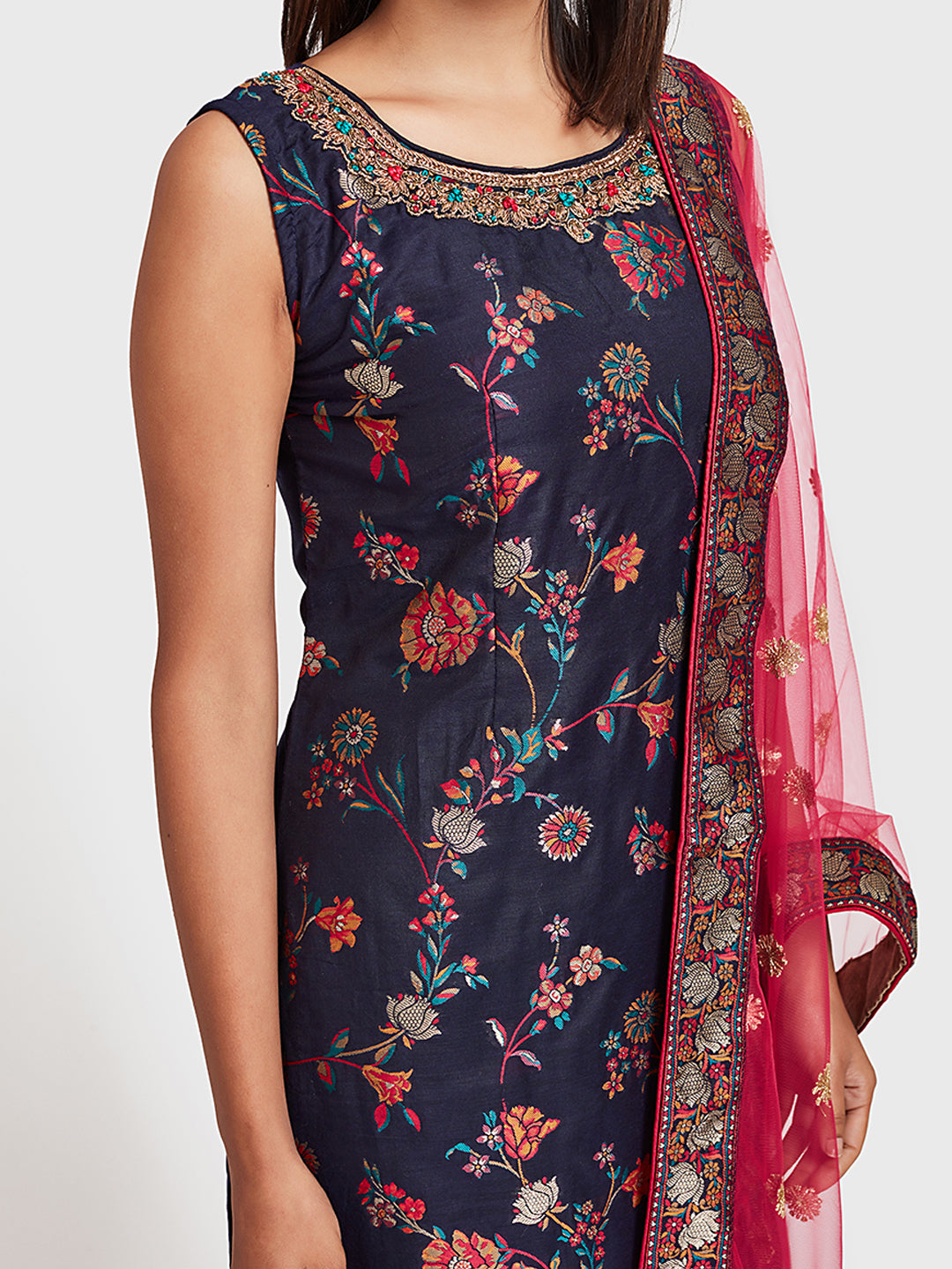 Neeru's Navy Blue Color, Muslin Fabric Suit-Pant. All Ready-To-Wear Styles Consist Of 2 Inches Margin For Alterations.