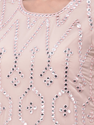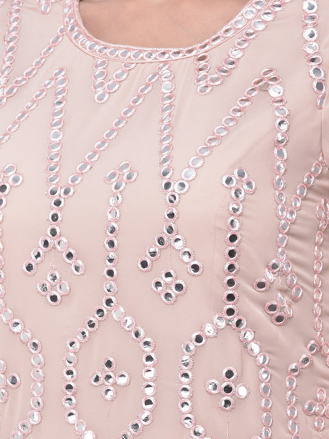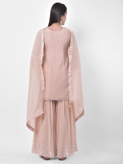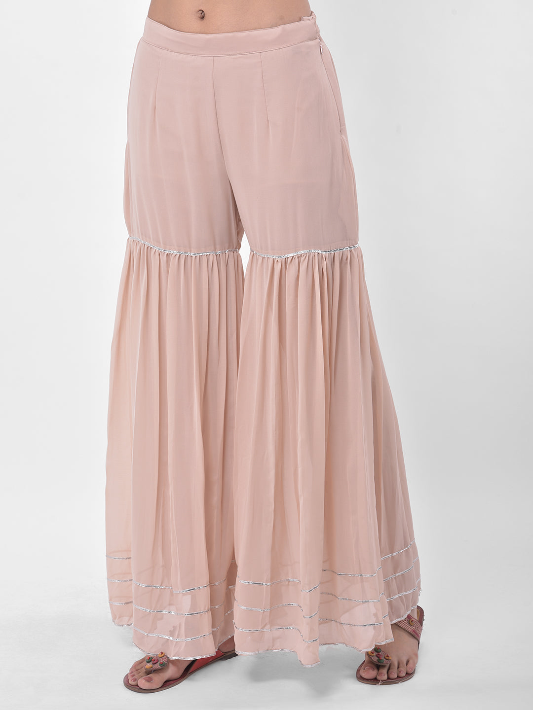 Neeru's Onion Color Georgette Fabric Suit-Gharara. All Ready-To-Wear Styles Consist Of 2 Inches Margin For Alterations.