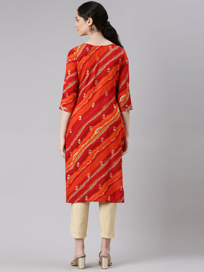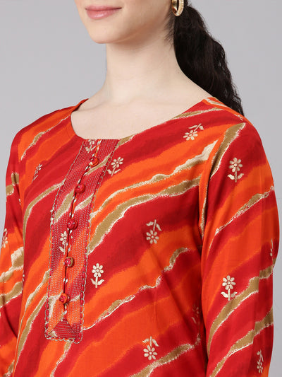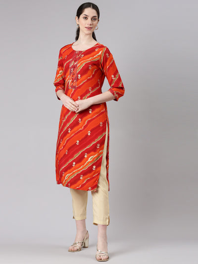 Neerus Orange Straight Casual Striped Kurtas Effortless style in stunning stripes.