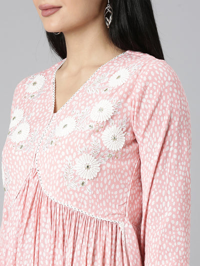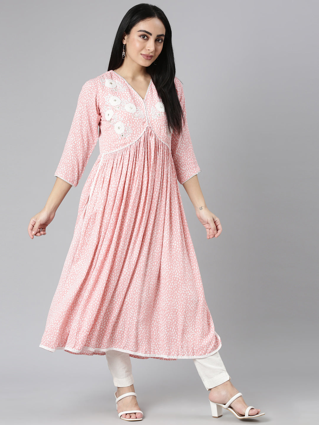 Neerus Pink Straight Casual Floral Anarkali Kurtas Effortlessly chic and comfortable, these anarkali kurtas are perfect for everyday wear. Made from soft and breathable fabric, you'll stay cool and stylish all day long.