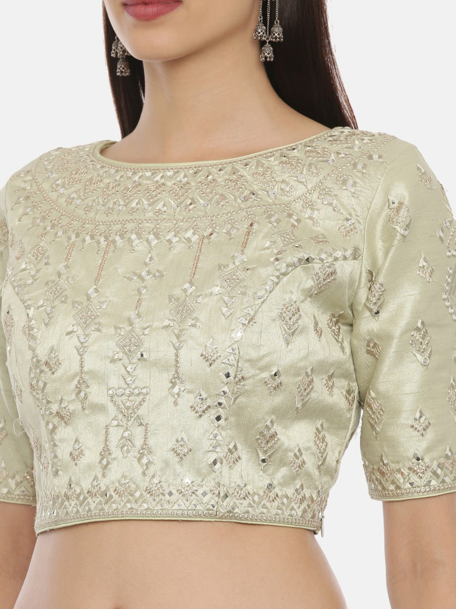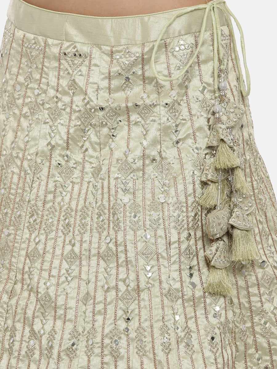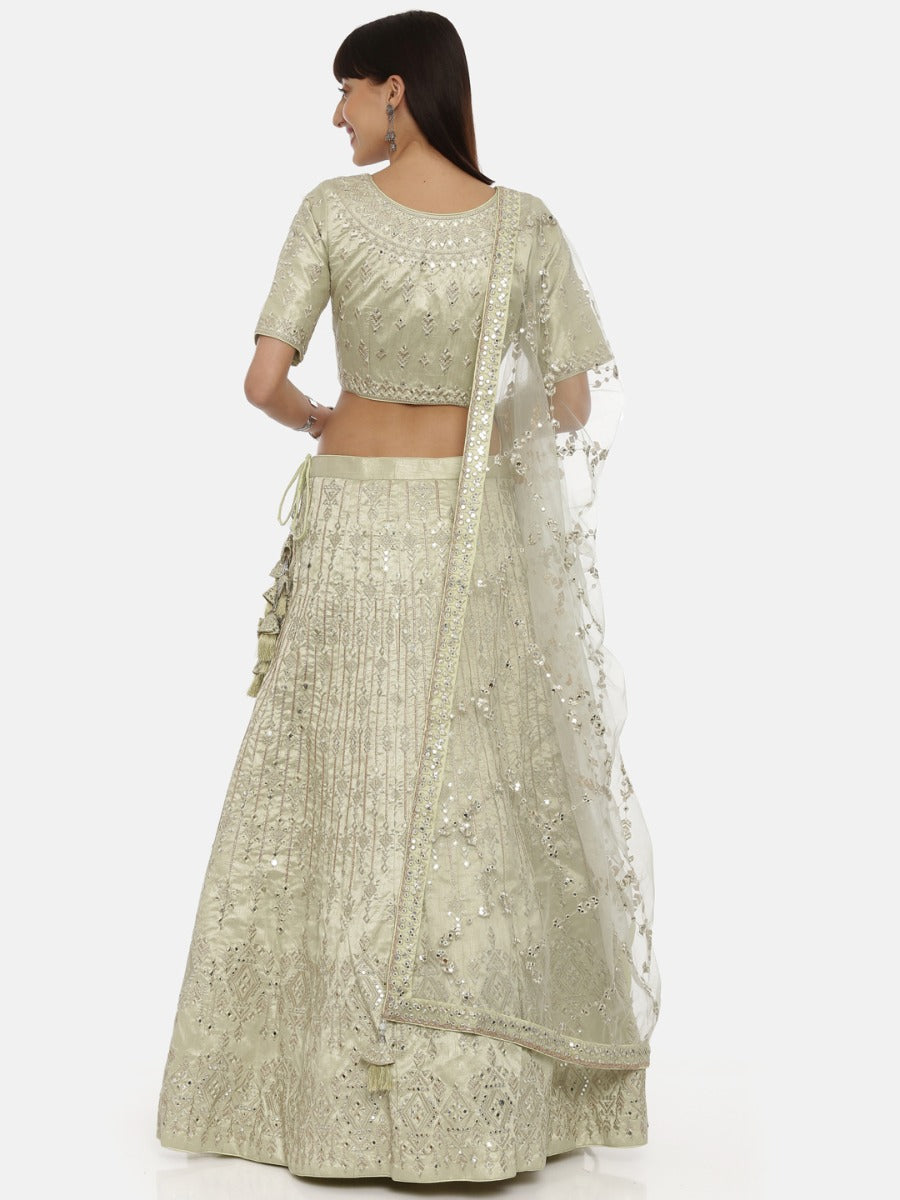 Neeru's Pista Color, Nett Fabric Ghagra Set. All Ready-To-Wear Styles Consist Of 2 Inches Margin For Alterations.