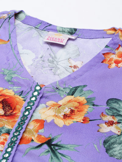 Neeru's Women Floral Printed A-Line Cotton Kurta
