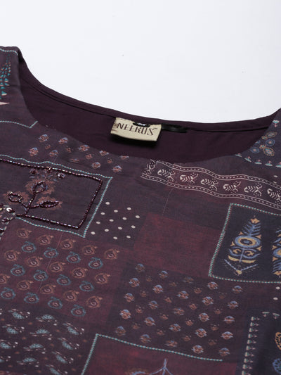 Neerus Purple Color Silk Fabric Gown