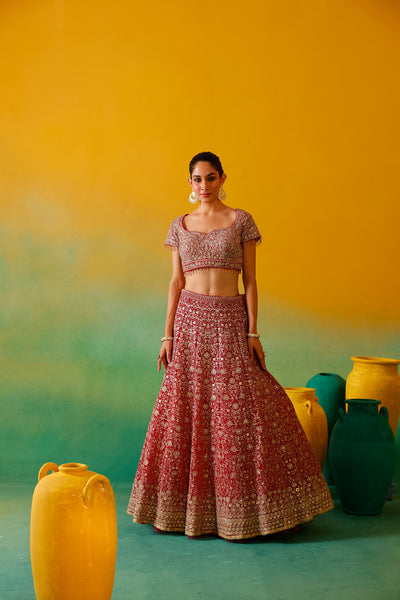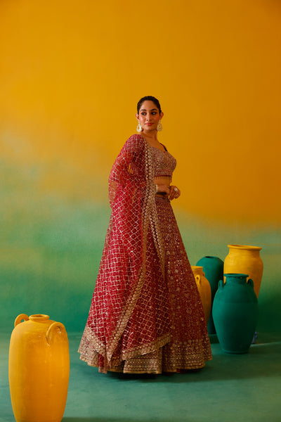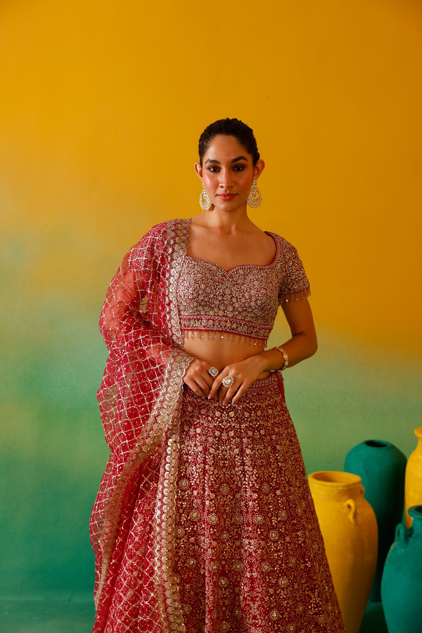 Neerus Rani Pink Embroidery work Nett Fabric Ghagra Set Made with delicate Nett fabric and intricate embroidery work, this stunning Ghagra set will make you the star of any occasion.
