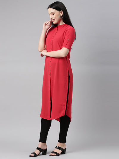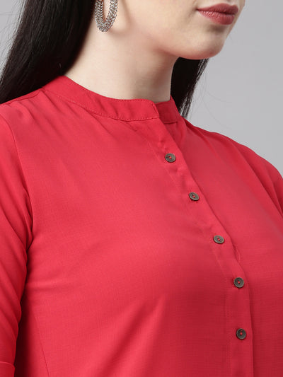 Neeru's Red Color, Slub Rayon Fabric Kurta.