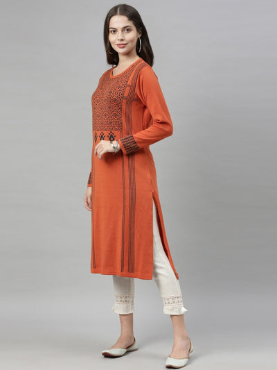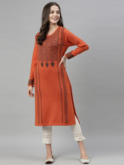 Neeru's Rust Color, Undefined Fabric Kurtha Winter Wear.