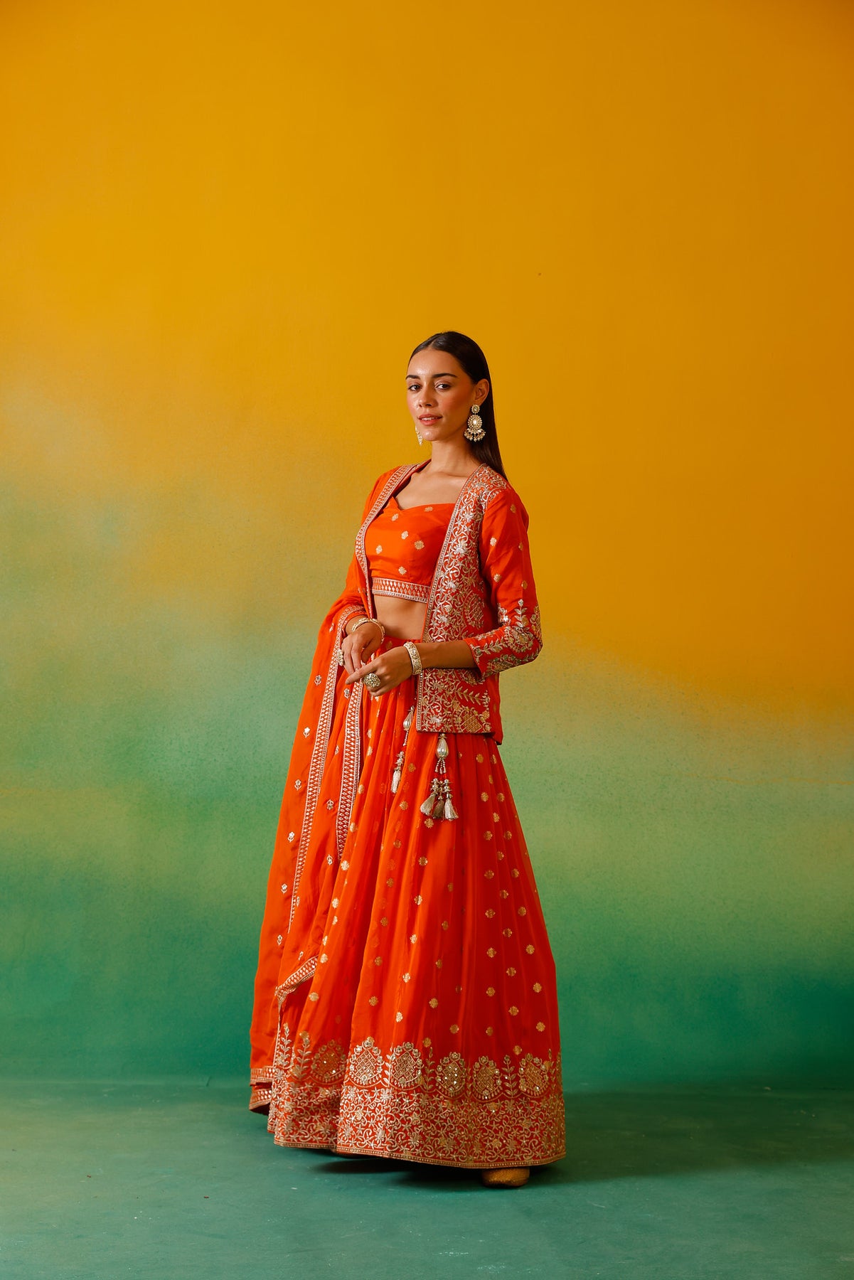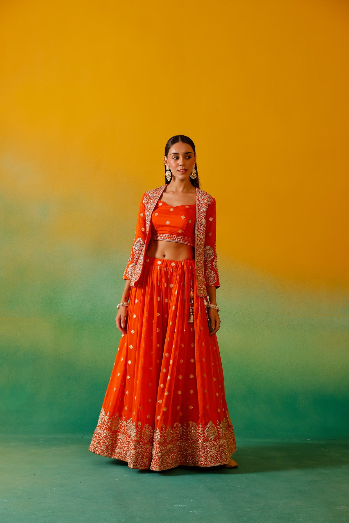 Neerus Rust Embroidery work Organza Fabric Ghagra Set