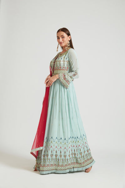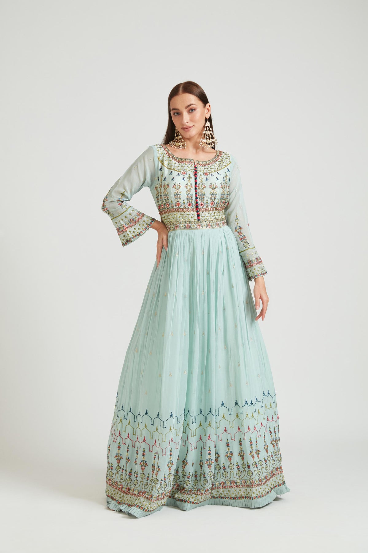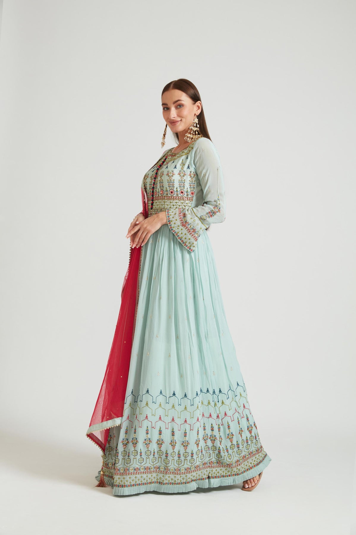 Neeru's Sea Green Color Georgette Fabric Salwar Kameez