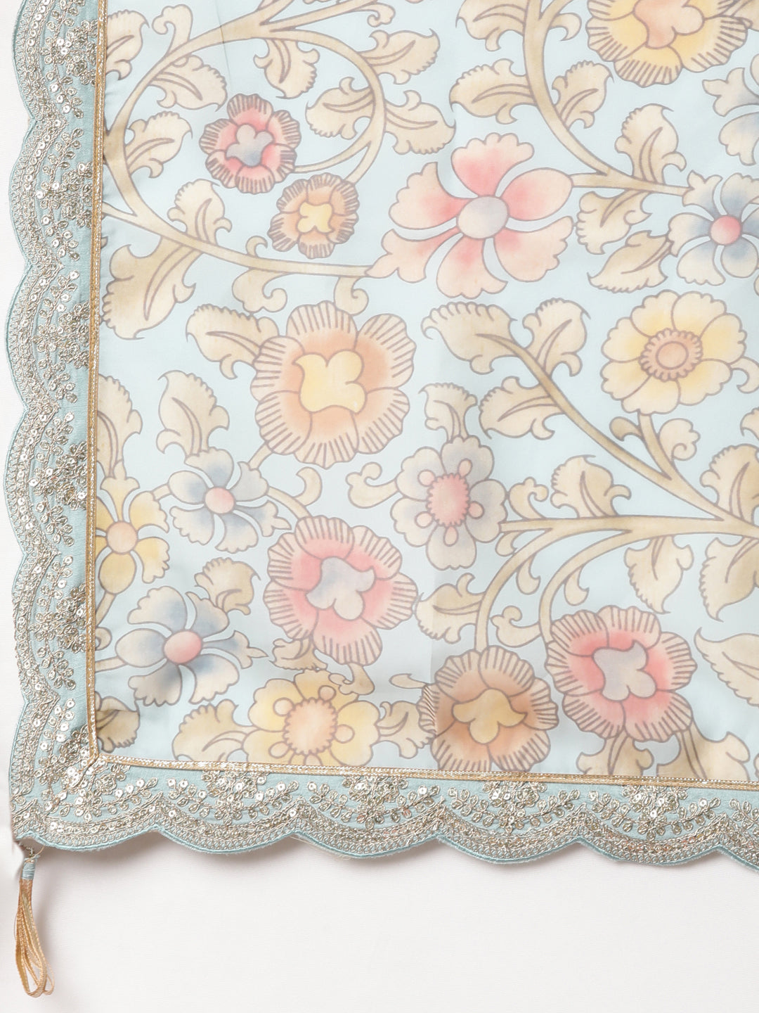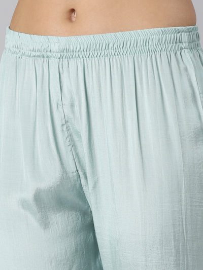 Neeru's Sea Green Floral Kurta Trousers Set With Dupatta.
