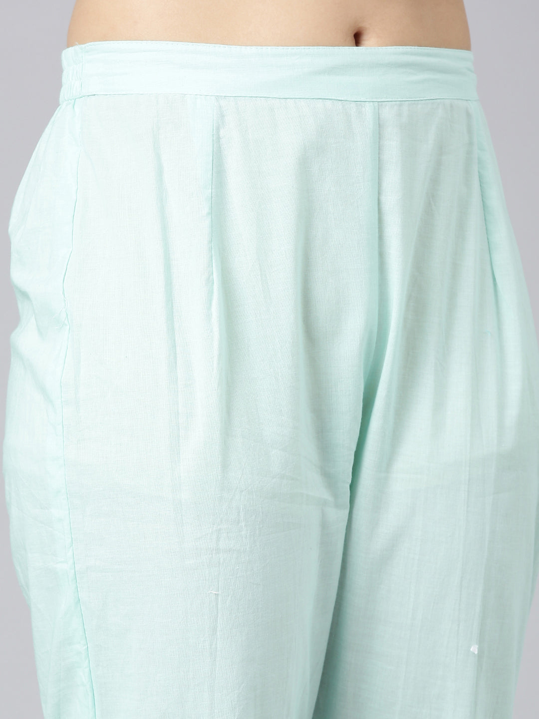 Neerus Sea Green Yoke Design Anarkali Kurta and Trousers With Dupatta