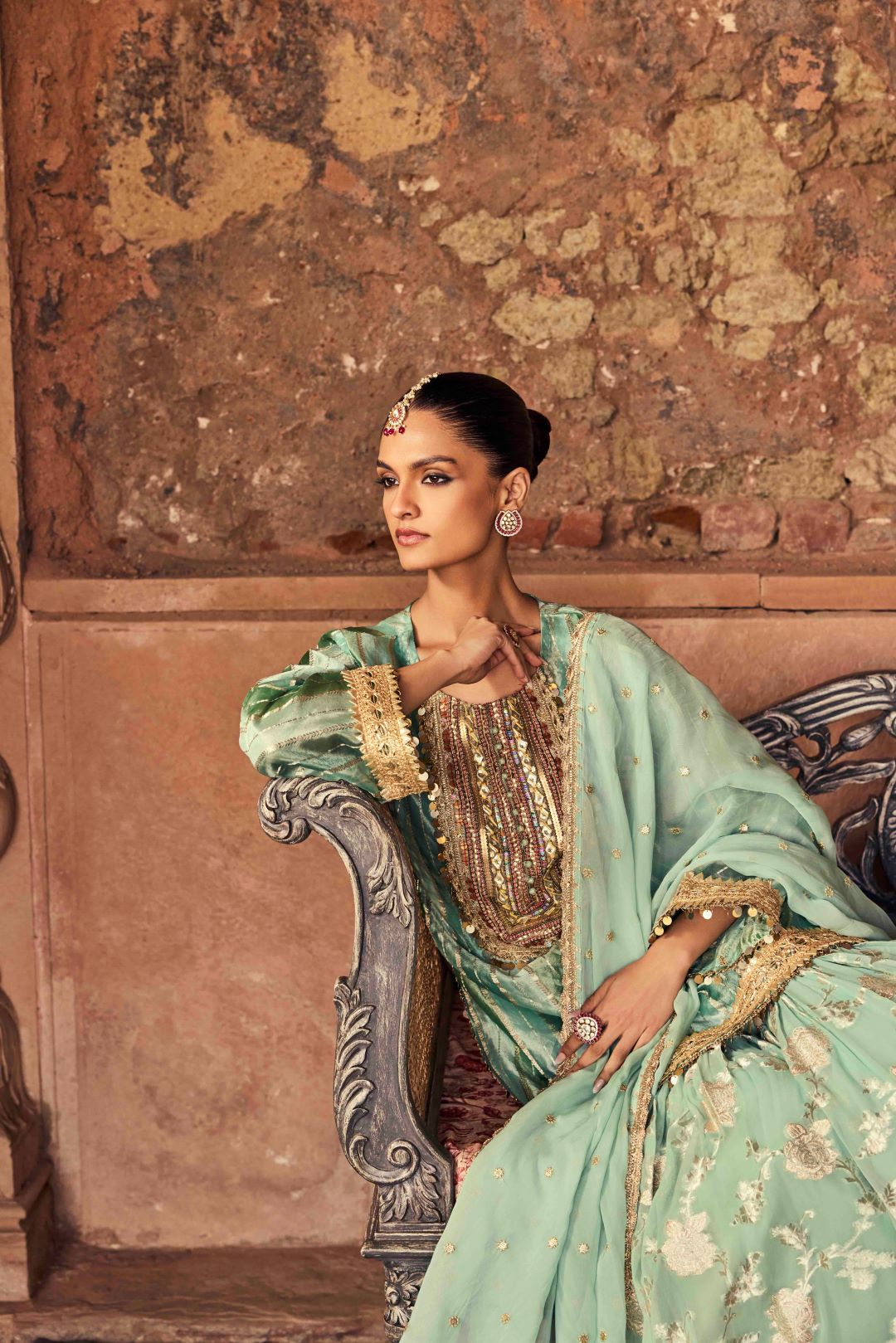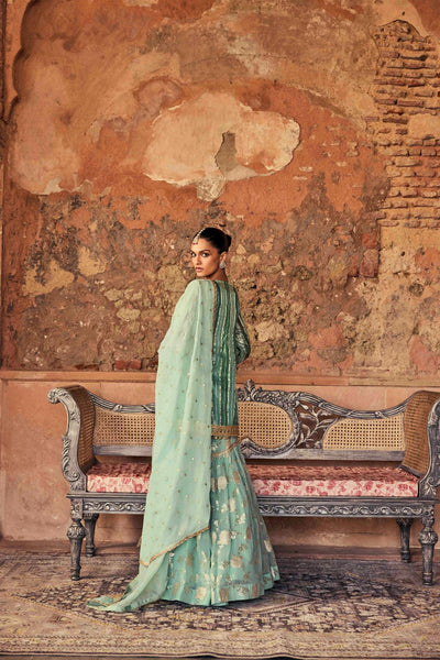 Feel stunning and comfortable in this gorgeous kurta and sharara set! Made from luxurious tissue fabric, it's an elegant and versatile addition to your wardrobe. Plus, the beautiful zari work adds a touch of glamour to any occasion.