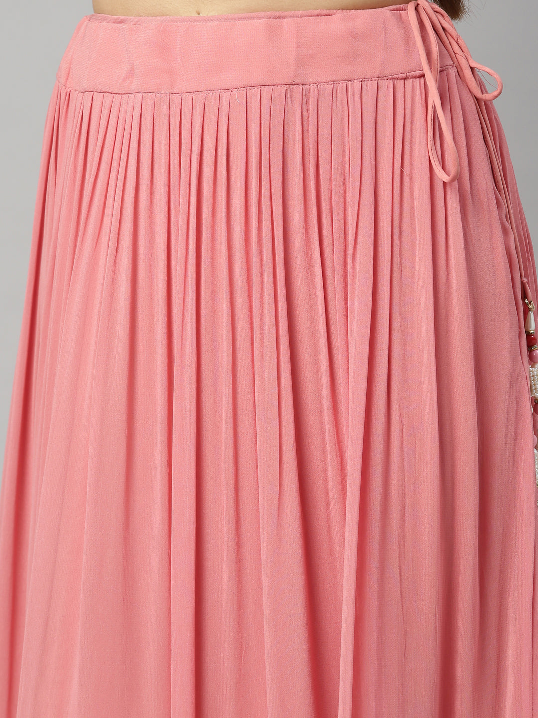 Neeru's Tomato Color, Georgette Fabric Ghagra Set.