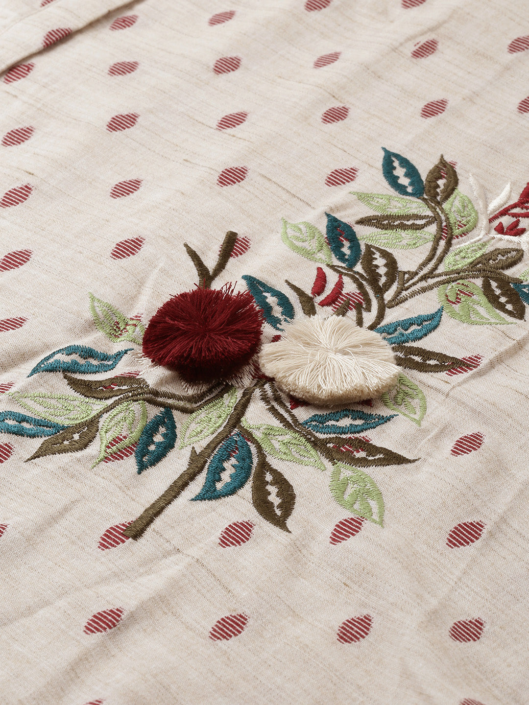 Neeru's Women Cream-Coloured Maroon Woven Design A-Line Kurta